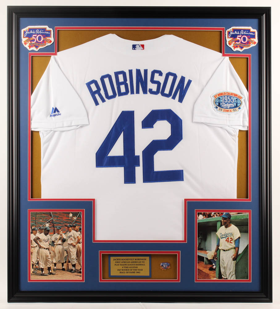 Jackie Robinson Dodgers 32x36 Custom Framed Jersey Display with 50th Anniversary Jackie Robinson Pin