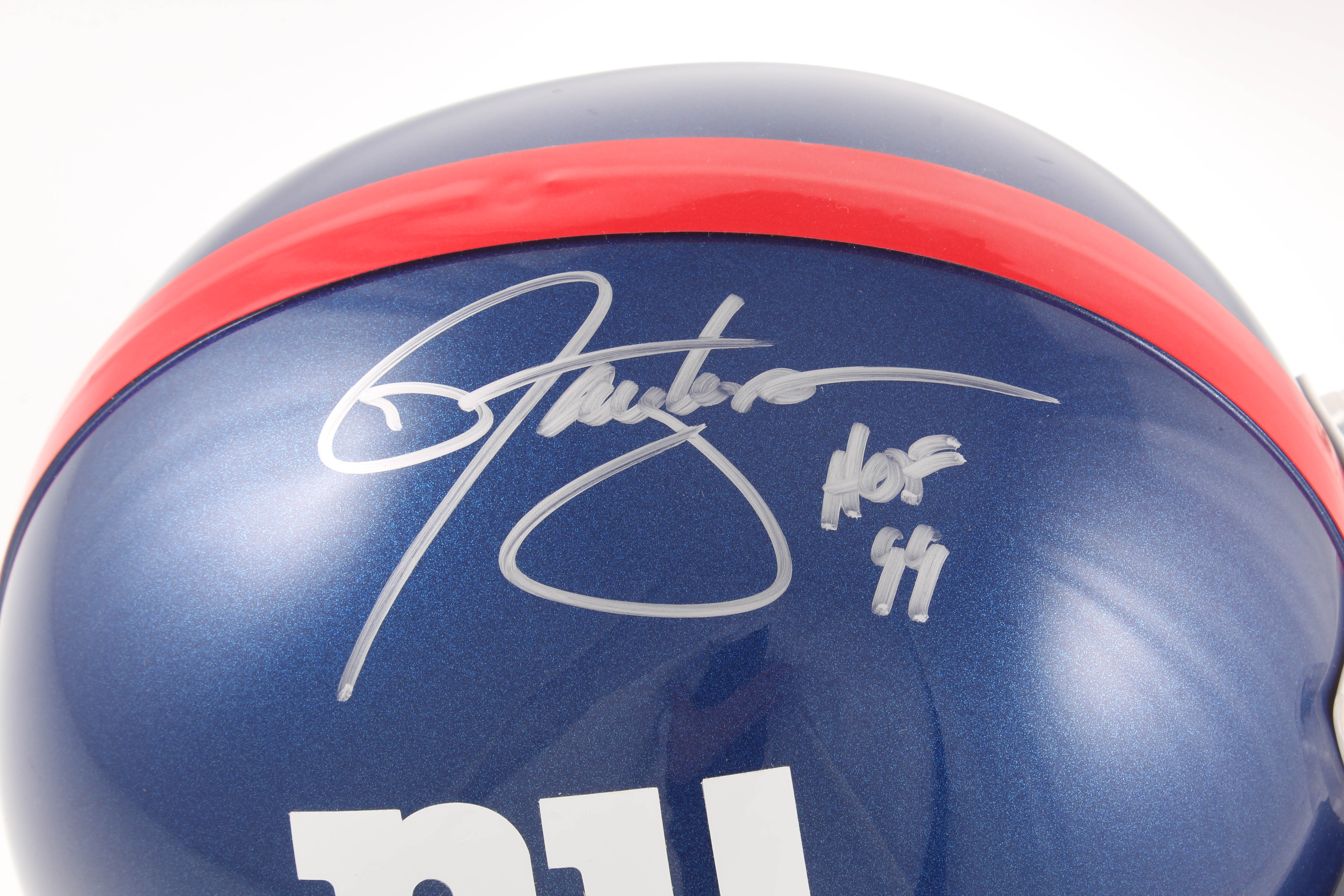 Riddell New York Giants full-size replica helmet. Hand-signed and inscribed in silver paint pen by Lawrence Taylor (HOF).
