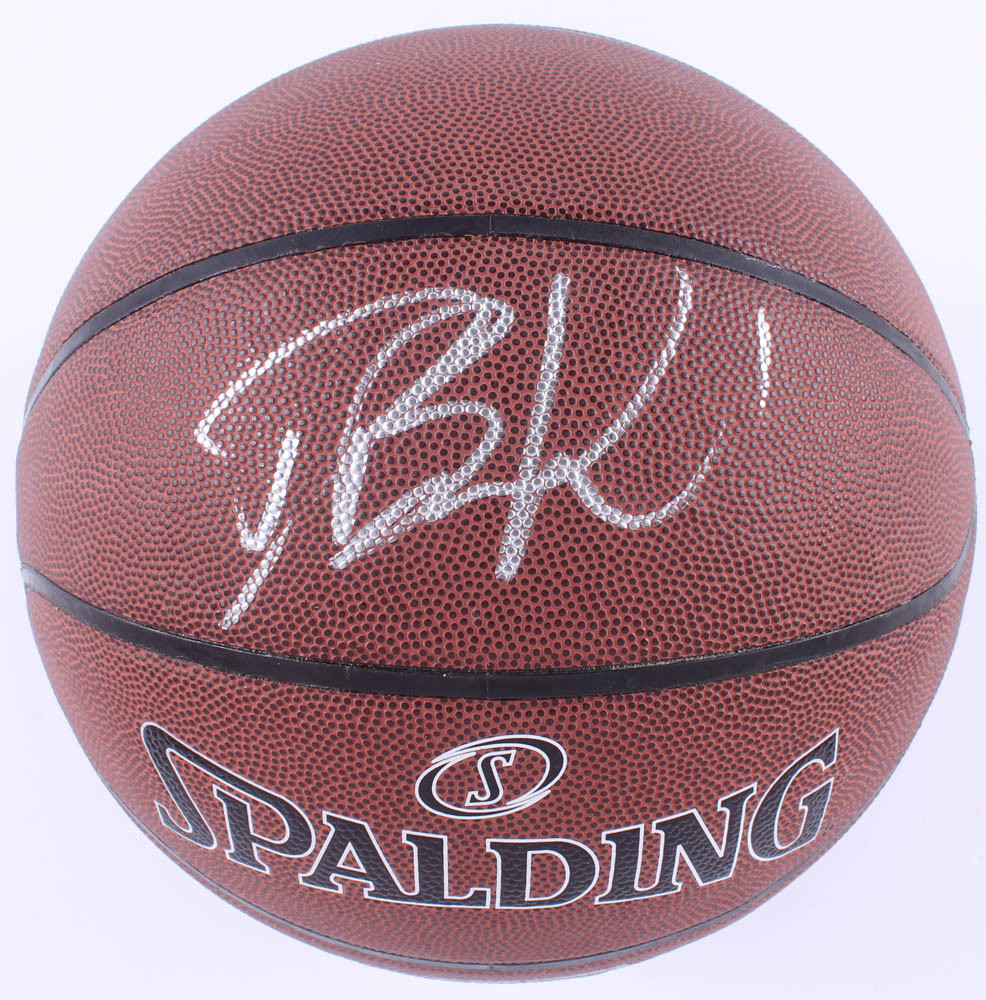 Spalding Indoor/Outdoor NBA Super Tack Basketball. Hand-signed in silver paint pen by Devin Booker (Phoenix Suns). Please see images for details regarding the condition of the basketball.