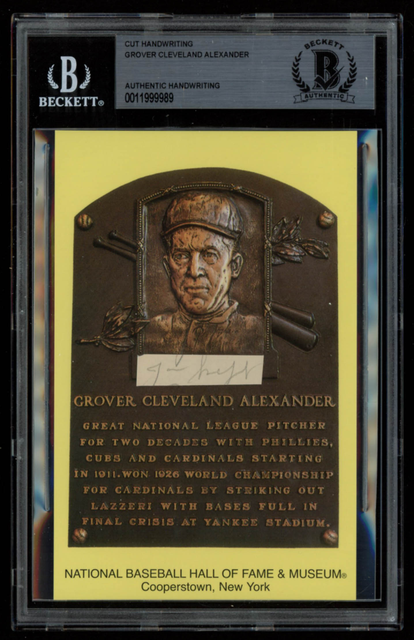 Grover Alexander Authentic Handwritten Word Gold Hall of Fame Postcard (BGS Encapsulated)