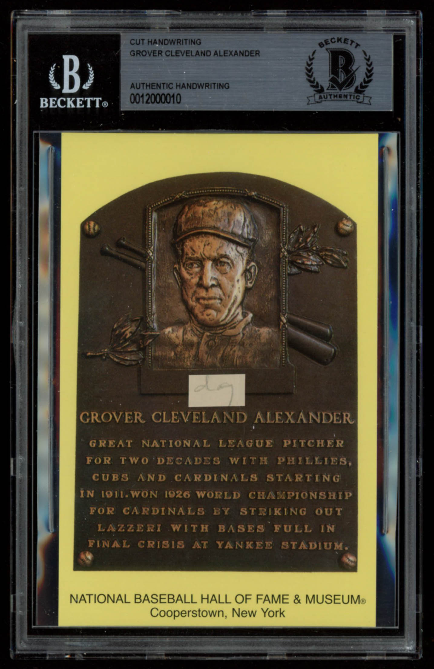 Grover Alexander Authentic Handwritten Word Gold Hall of Fame Postcard (BGS Encapsulated)