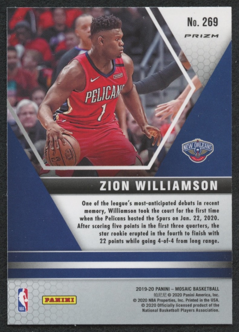 Zion Williamson 2019-20 Panini Mosaic Green #269