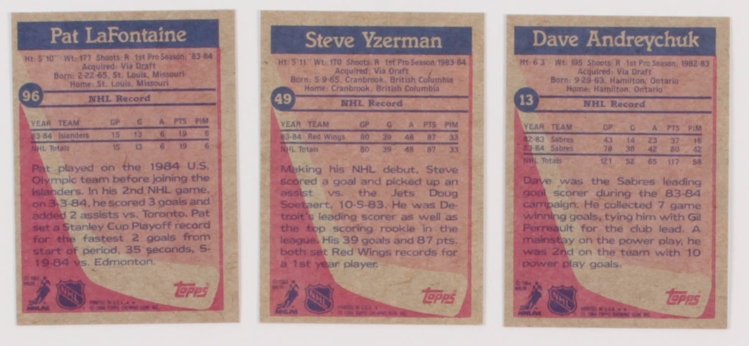 1984-85 Topps Complete Set of (165) Hockey Cards with #49 Steve Yzerman RC, #13 Dave Andreychuk SP RC, #96 Pat LaFontaine SP RC