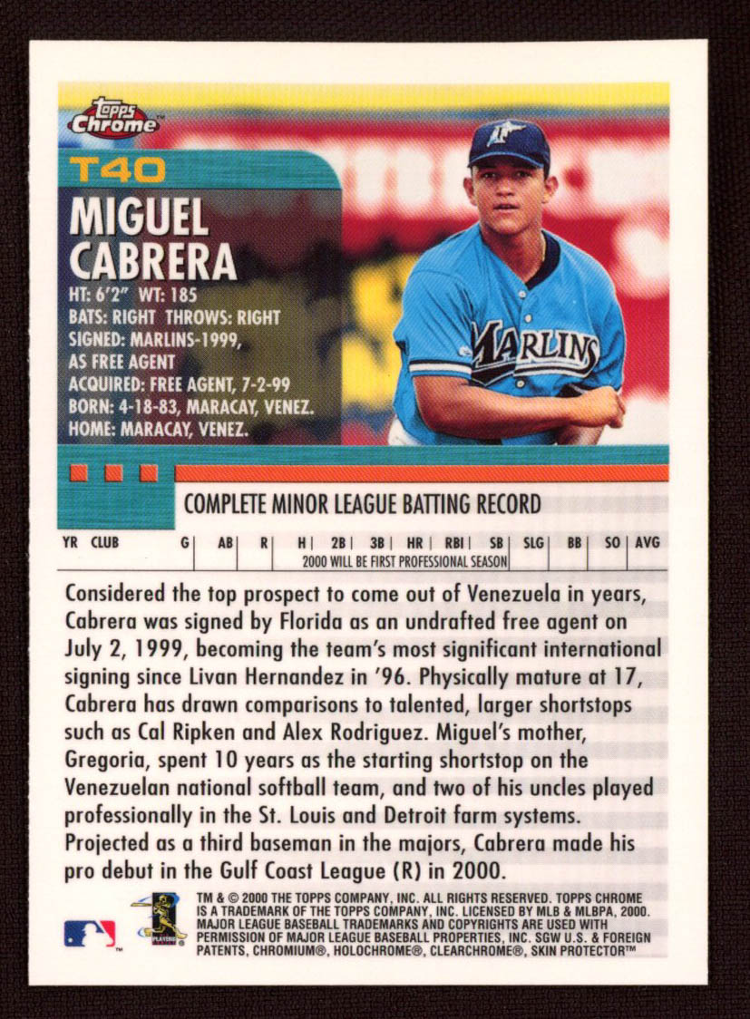 Miguel Cabrera 2000 Topps Chrome Traded #T40 RC