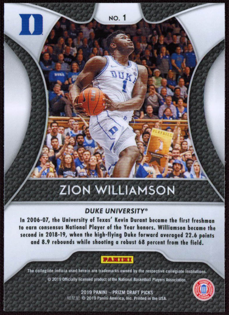 Zion Williamson 2019-20 Panini Prizm Draft Picks #1