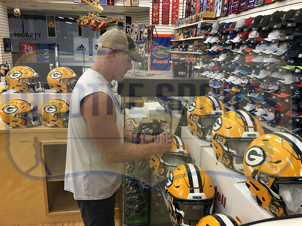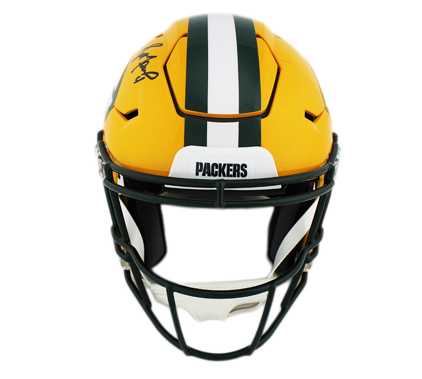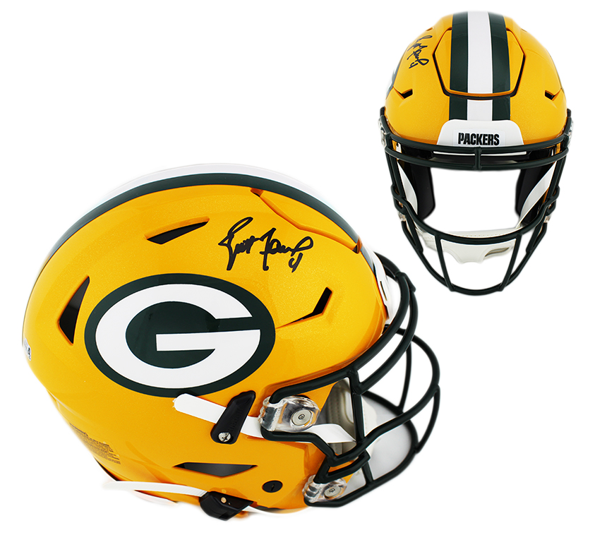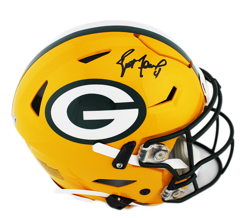 Riddell Green Bay Packers full-size authentic on-field SpeedFlex helmet. Hand-signed by Brett Favre (HOF).
