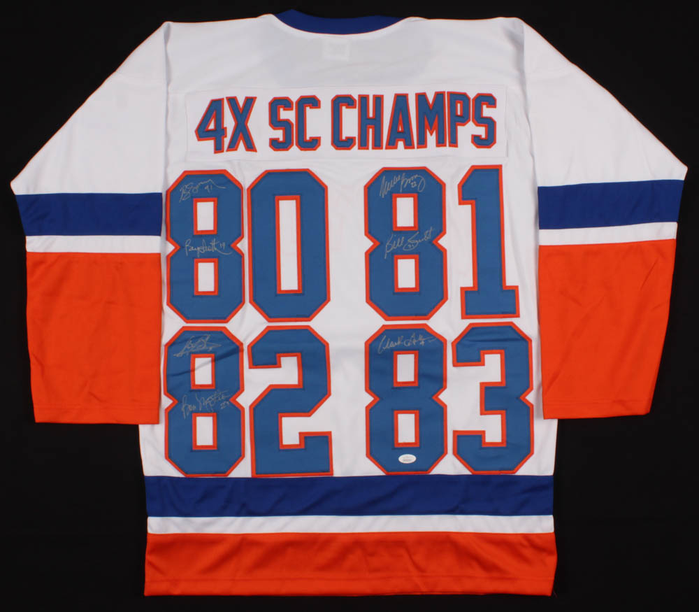 New York Islanders "4X SC Champs" Jersey Signed by (7) with Denis Potvin, Bob Nystrom, Billy Smith, Butch Goring, Bryan Trottier (JSA COA)