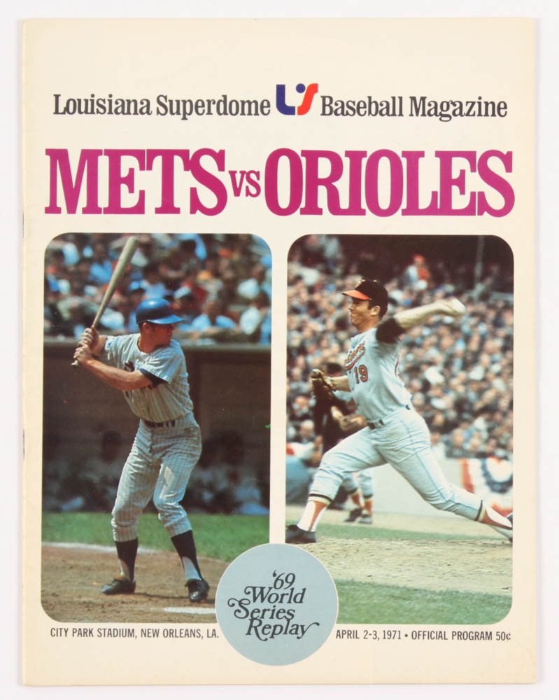 Louisiana Superdome baseball magazine, dated April 2-3, 1971. Features 1969 World Series replay.