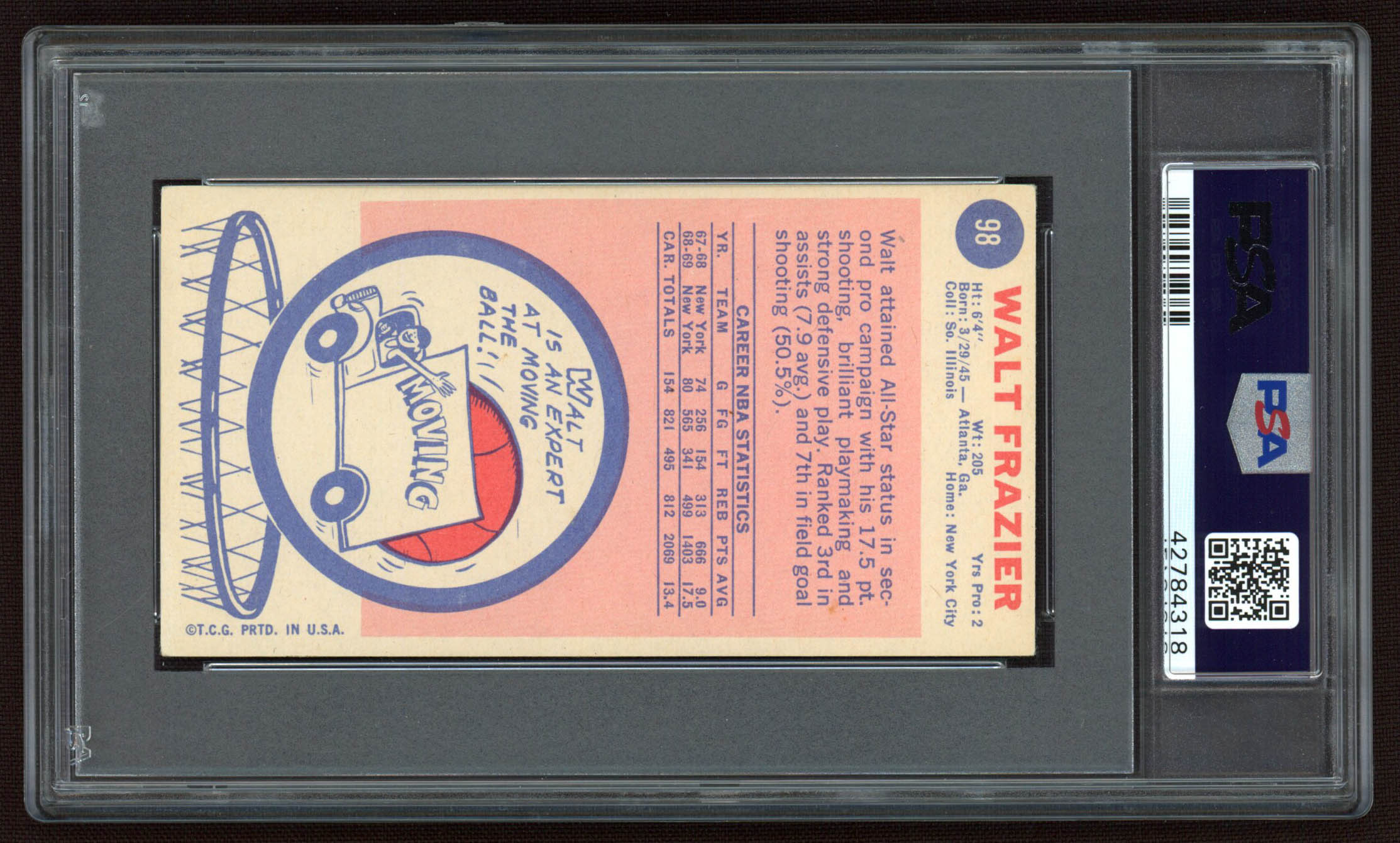 Walt Frazier Signed 1969-70 Topps #98 RC Inscribed "HOF 1987" (PSA Encapsulated)