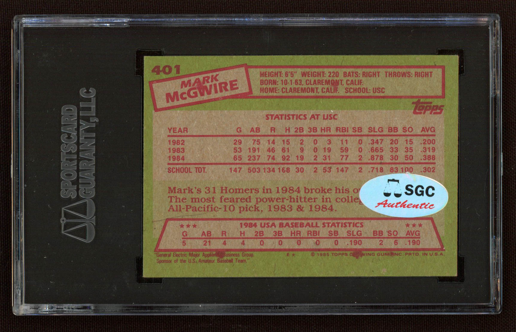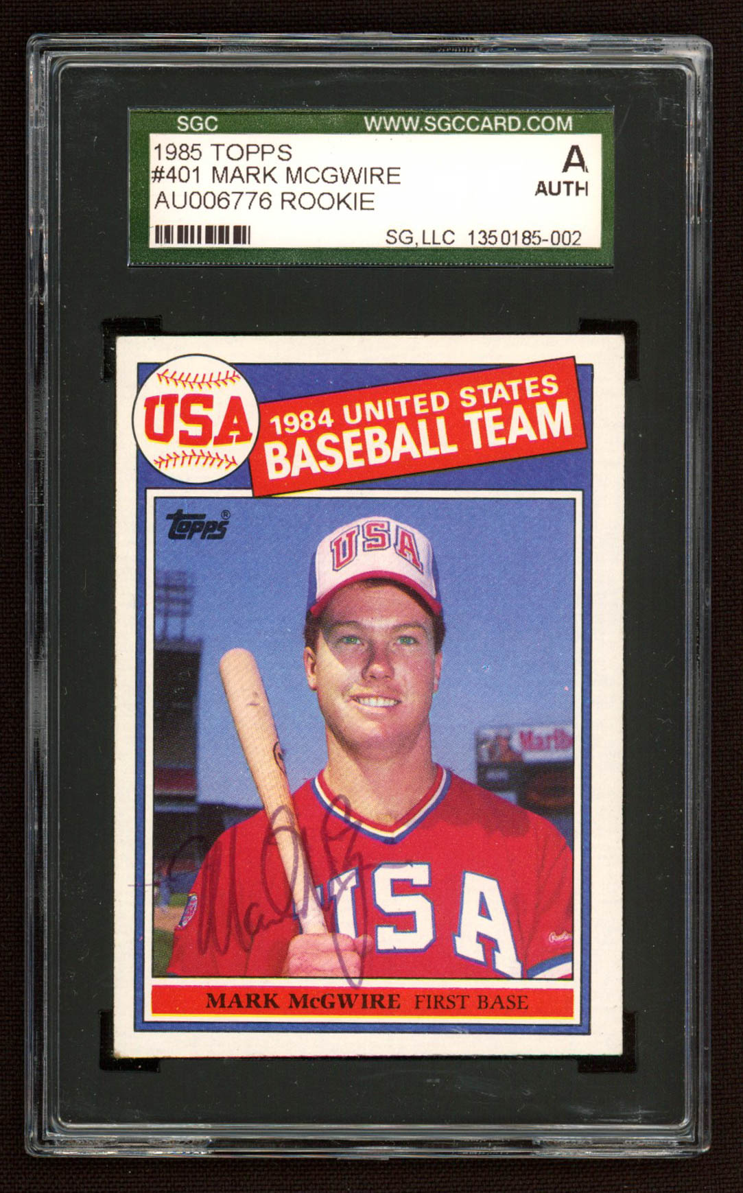 Mark McGwire Signed 1985 Topps #401 OLY RC (SGC Encapsulated)