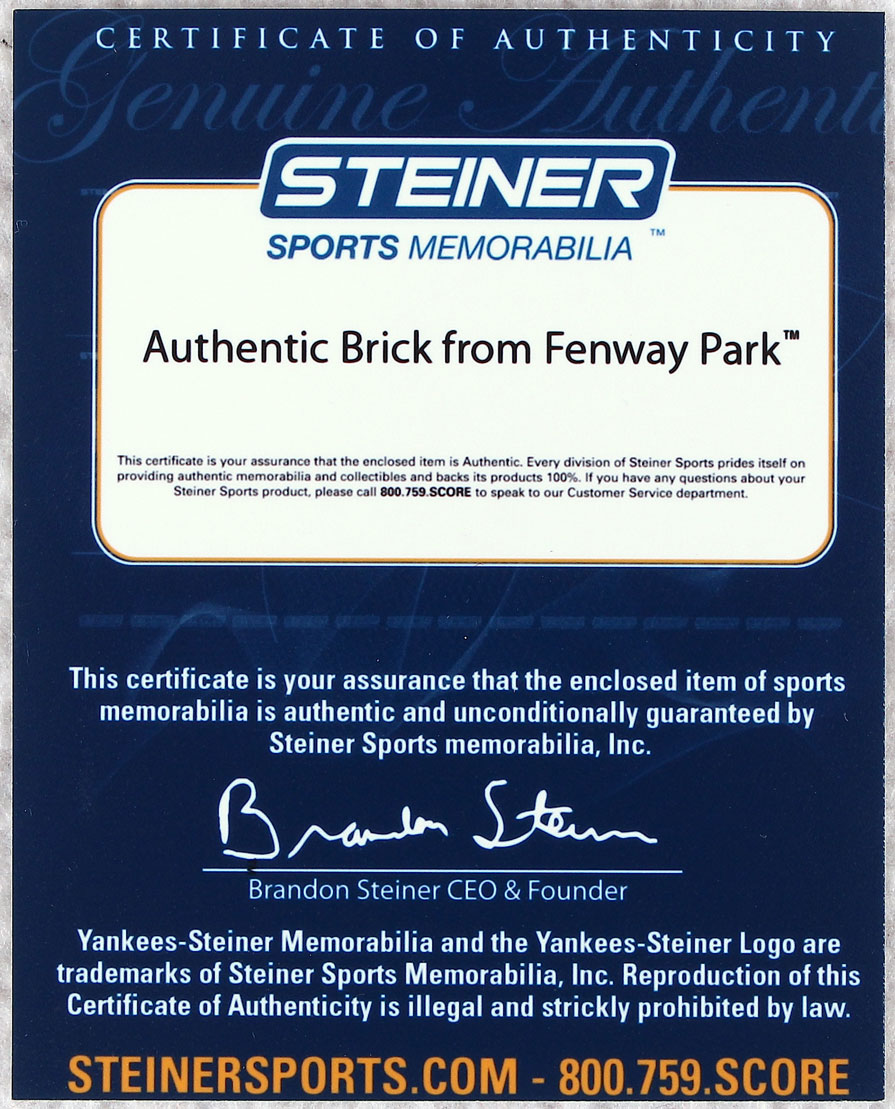 Boston Red Sox Authentic Brick From Fenway Park with Display Case (Steiner COA)