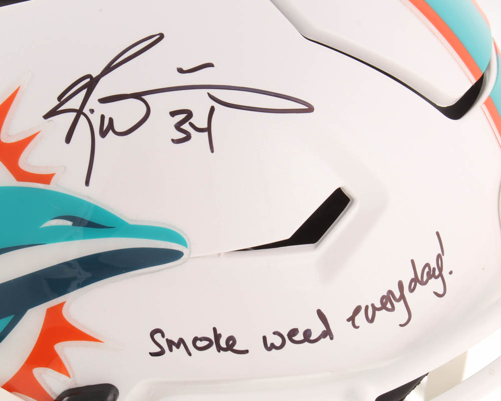 Riddell Miami Dolphins full-size authentic on-field SpeedFlex helmet has been hand-signed and inscribed in black felt-tip pen by Ricky Williams.