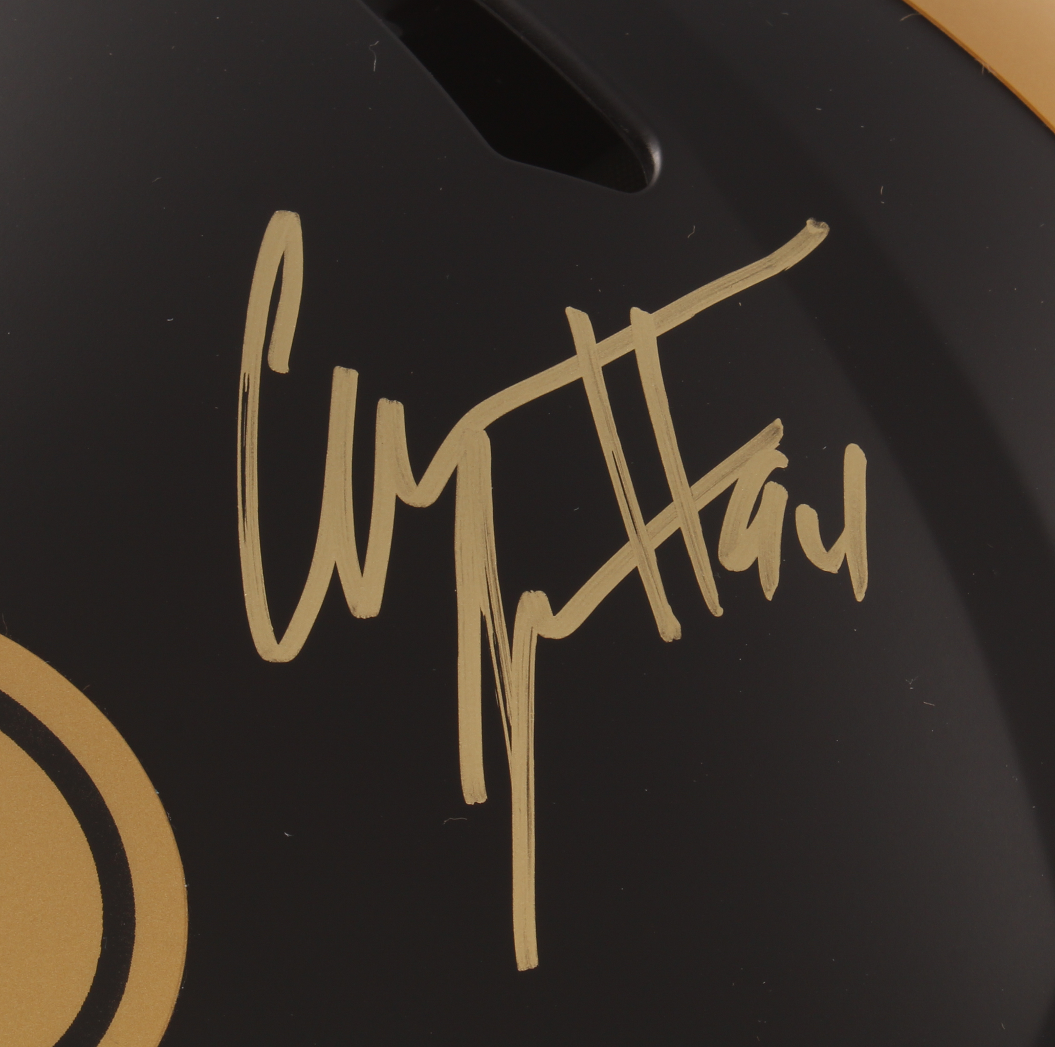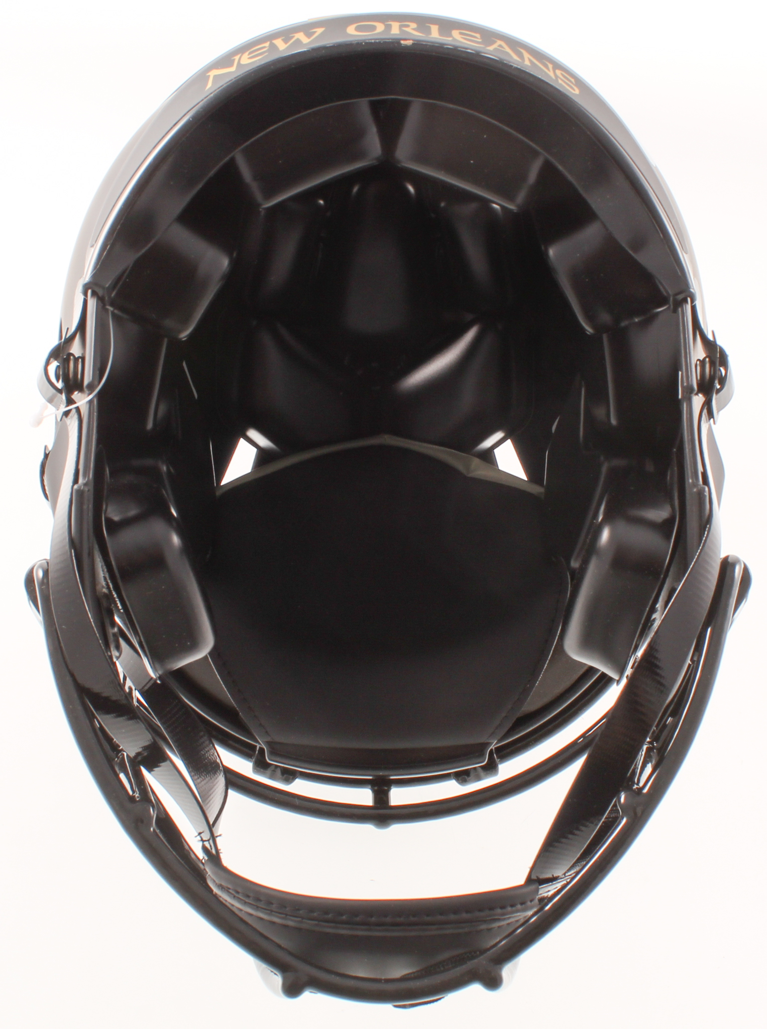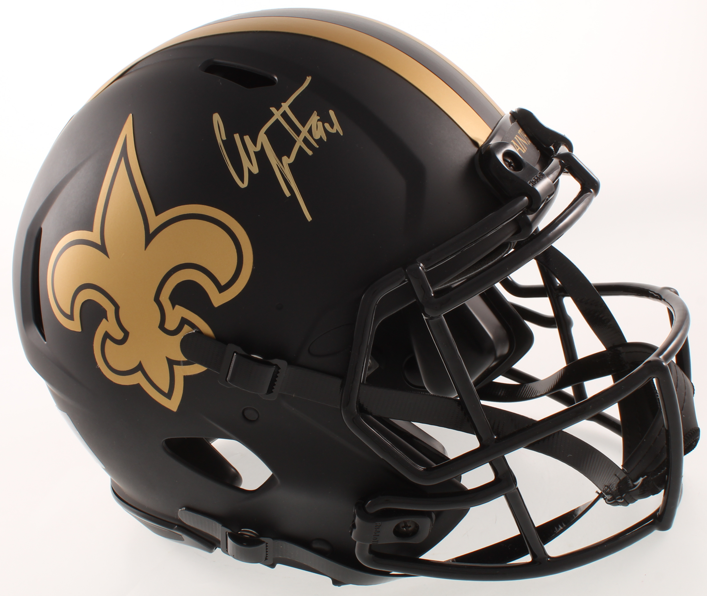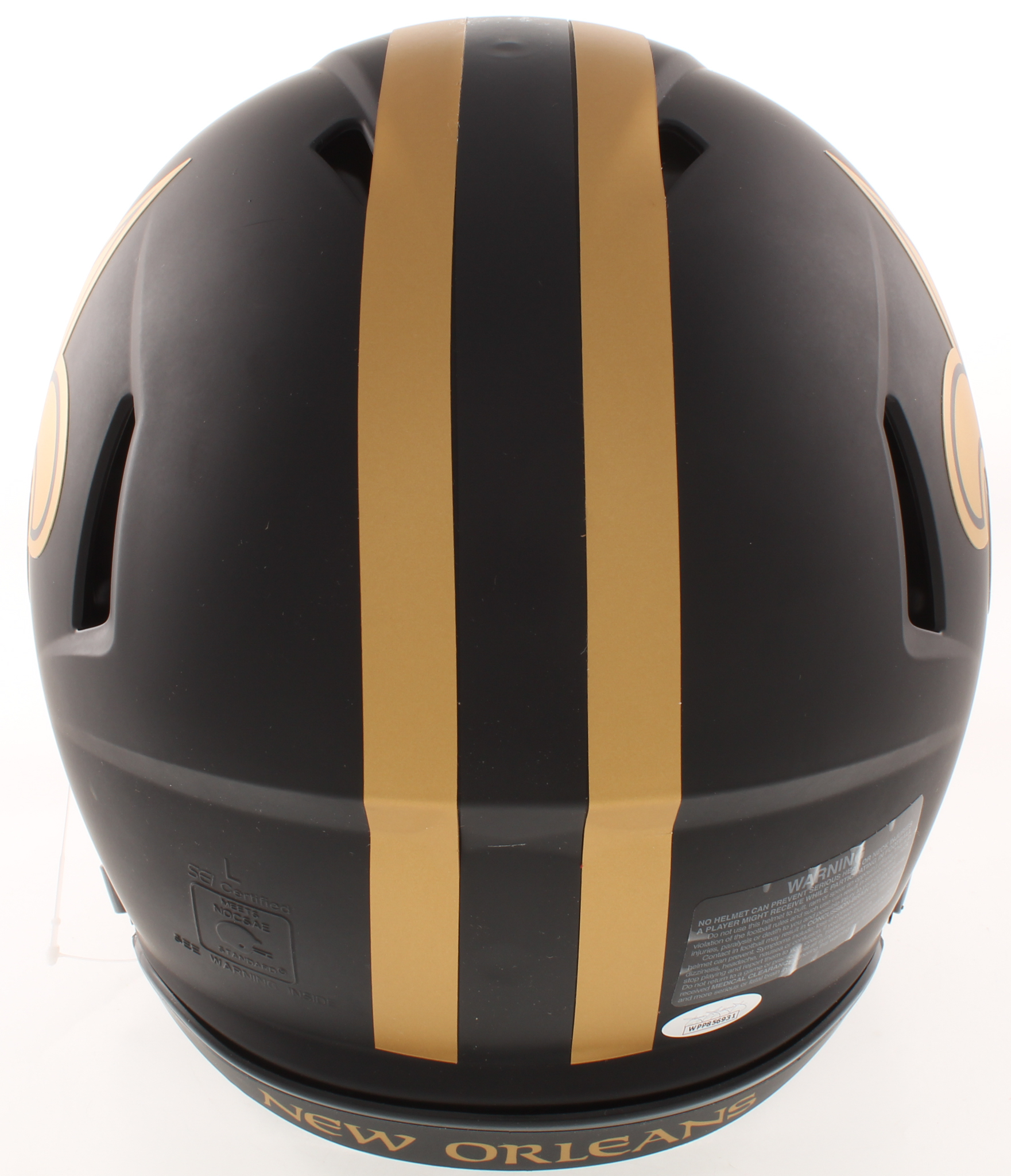 Riddell New Orleans Saints full-size authentic on field style Eclipse Alternate speed helmet has been hand-signed in gold paint pen by Cameron Jordan.
