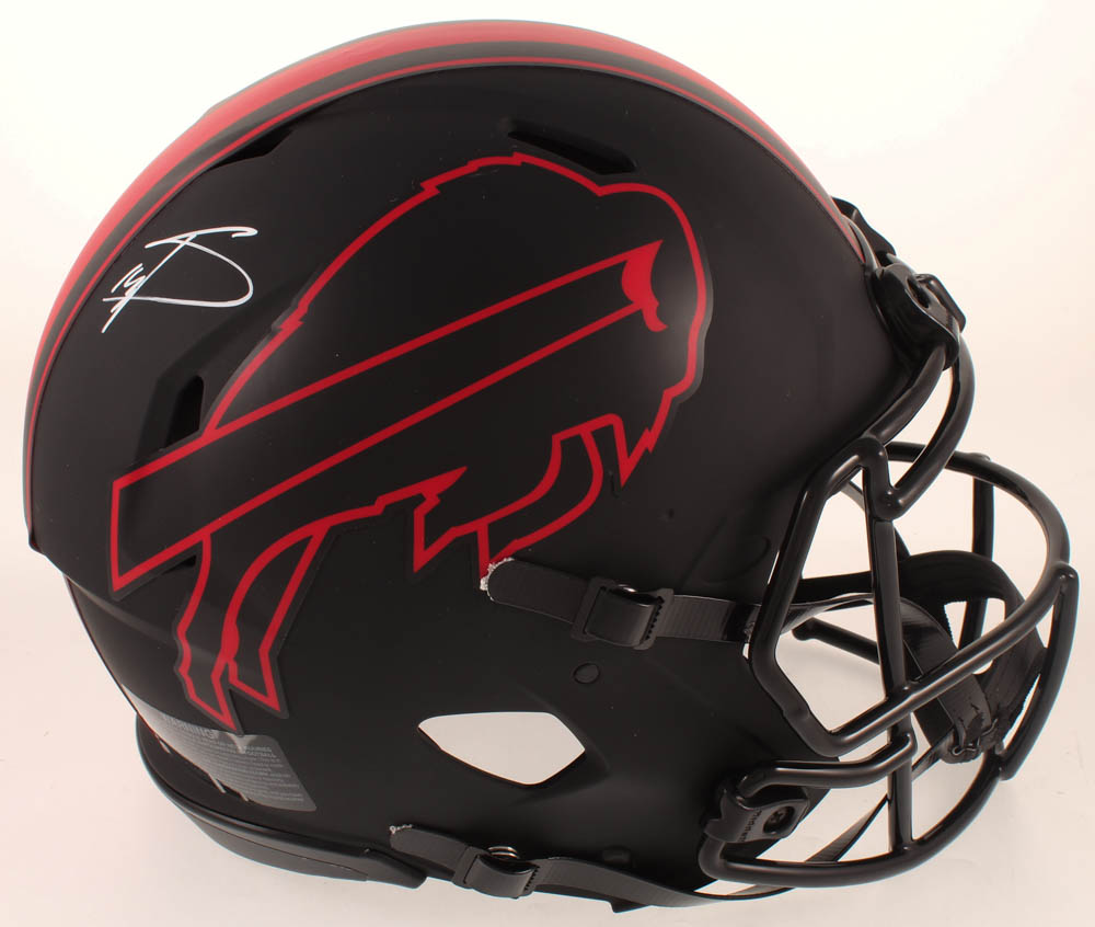 Riddell Buffalo Bills full-size authentic on-field Eclipse Alternate Speed replica helmet. Hand-signed in white paint pen by Stefon Diggs.