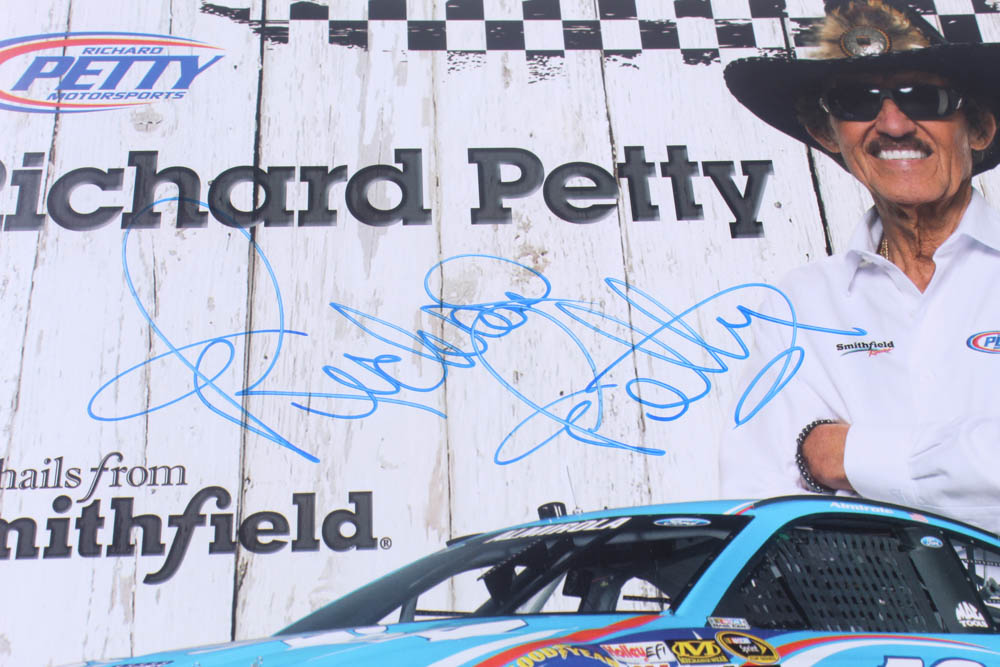 Photo measures 8" x 10" in size and has been hand-signed in blue felt-tip pen by Richard Petty (HOF).