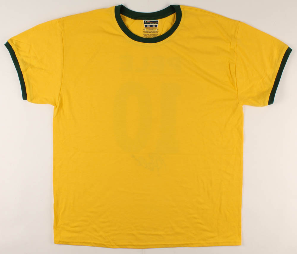 Custom on-field style jersey. Everything is printed on, size XL. Hand-signed in black felt tip pen by Pele. Please see images for condition.