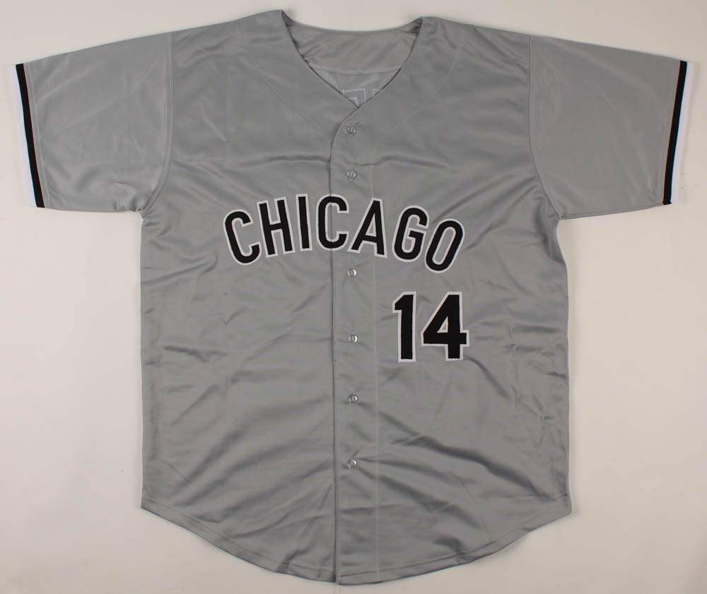 Custom on-field style jersey. Everything sewn on, size XL. Hand-signed by Paul Konerko. Konerko's career highlights have been custom stitched onto the back of the jersey below the reverse numbers.