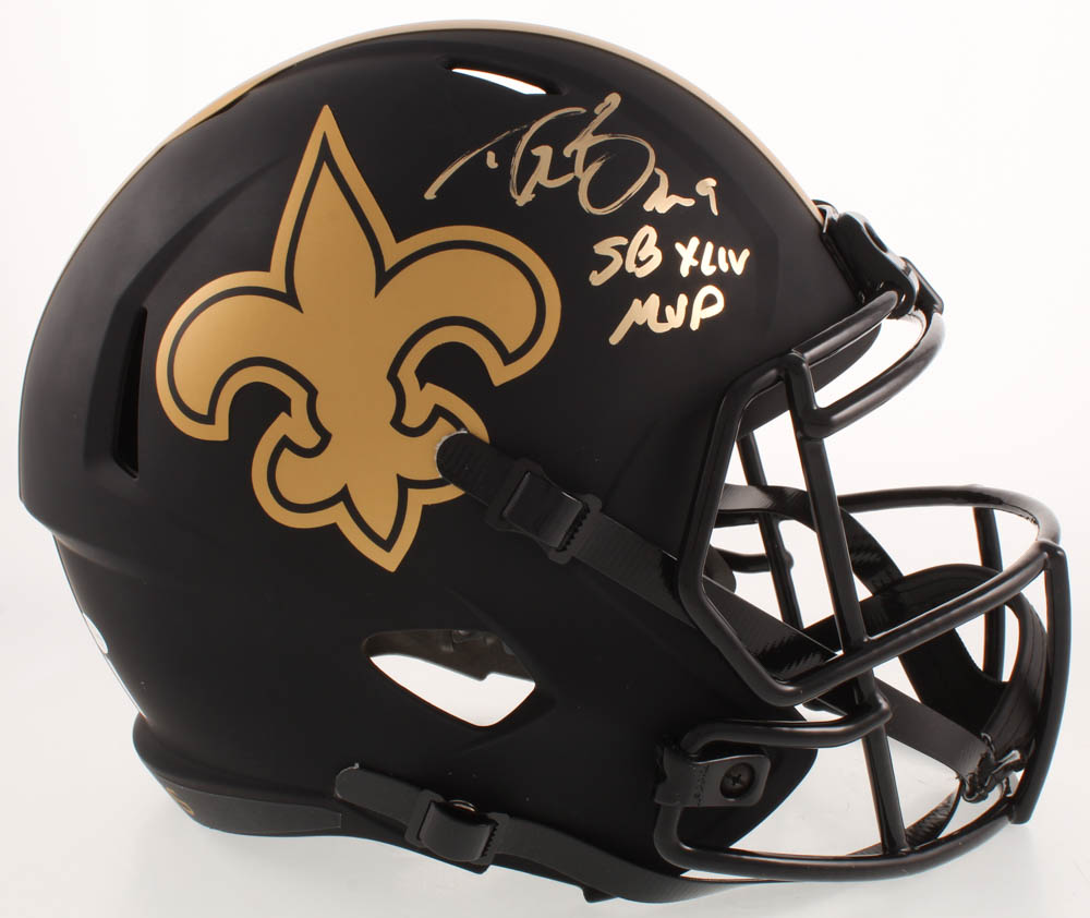 Drew Brees Signed Saints Eclipse Alternate Full-Size Speed Helmet Inscribed "SB XLIV MVP (Beckett COA & Brees Hologram)