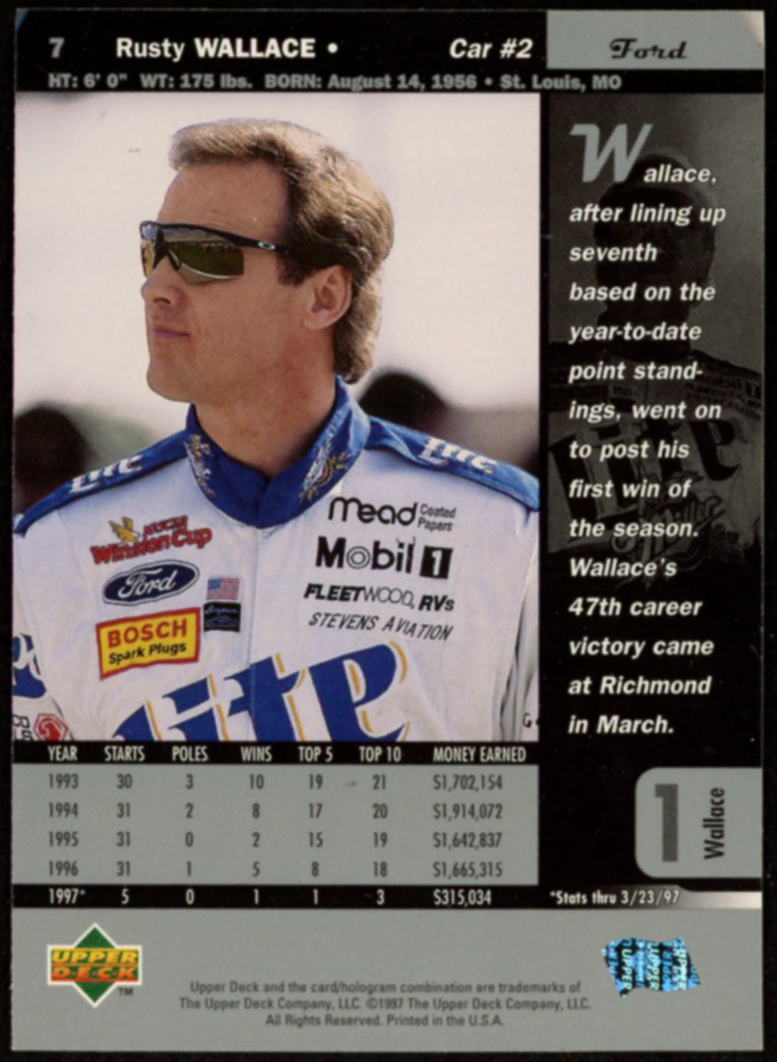 Rusty Wallace 1997 Upper Deck Road To The Cup #7