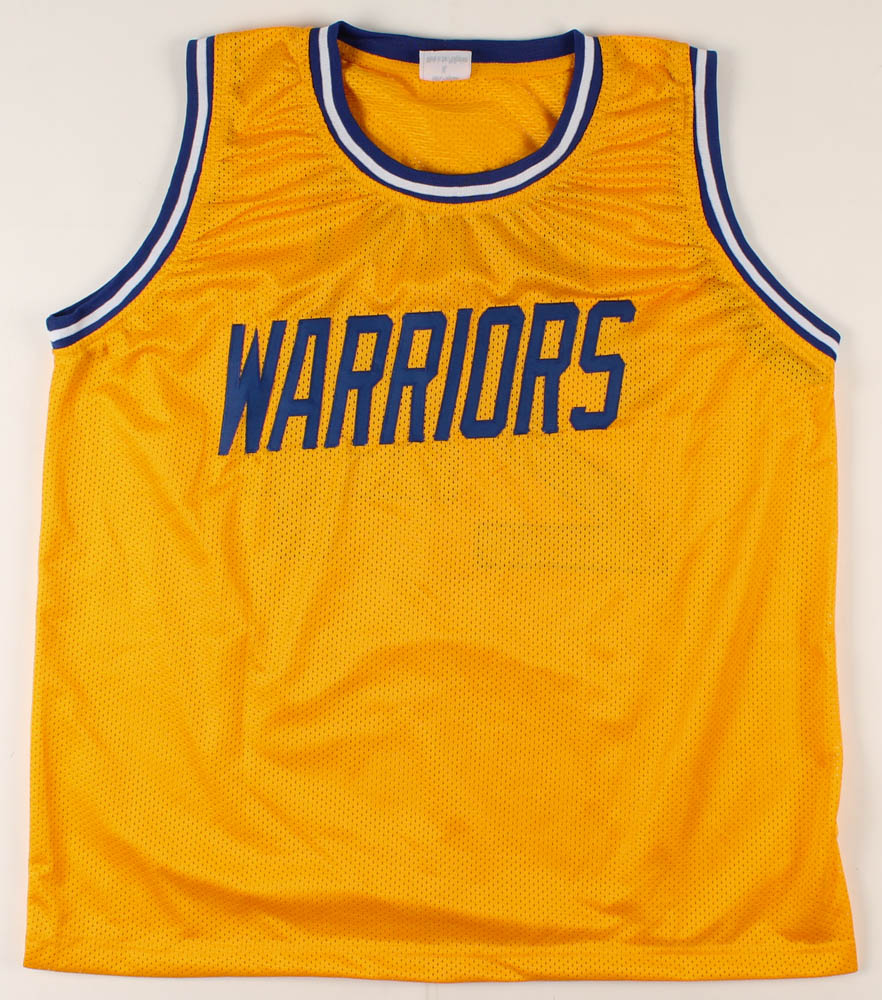 Custom on-court style jersey. Everything is sewn on, size XL. Has been hand-signed and inscribed in silver paint pen by Rick Barry. (HOF)