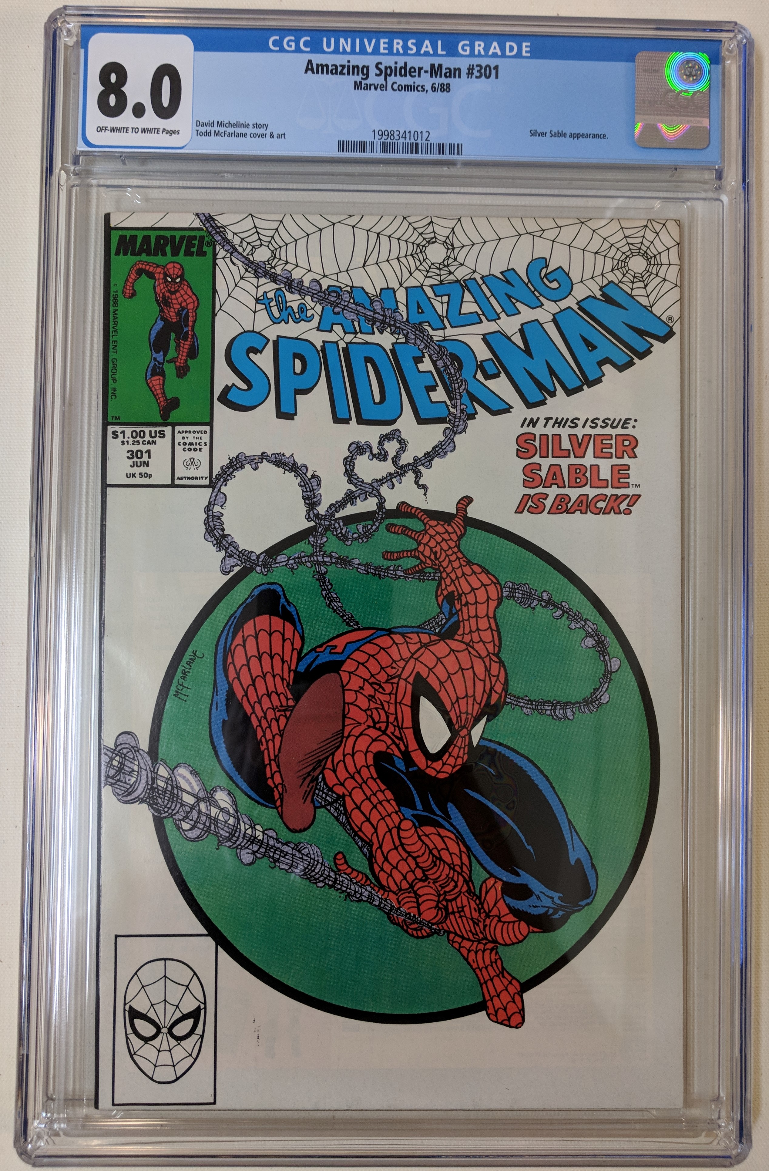 1988 "The Amazing Spider-Man" Issue #301 Marvel comic book. The comic book has been given a grade of (CGC) 8.0.