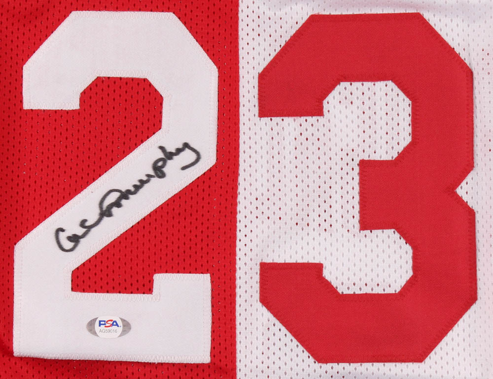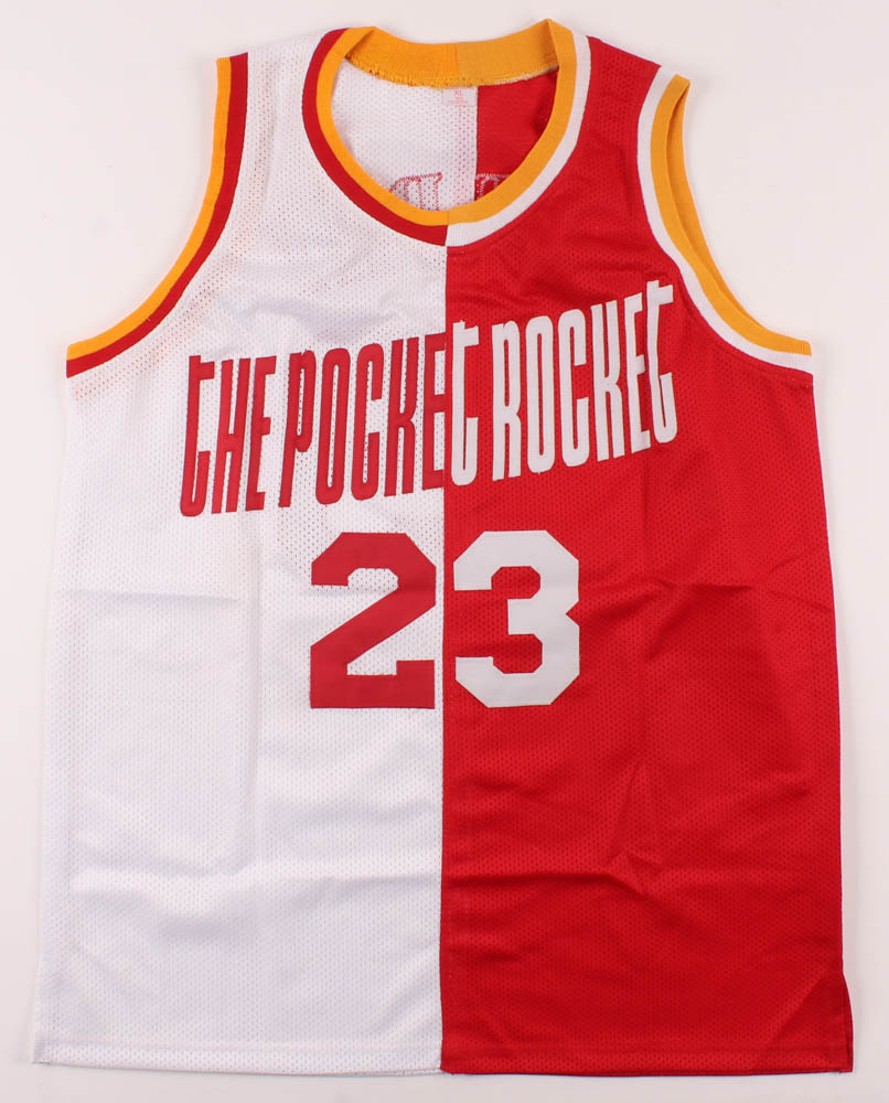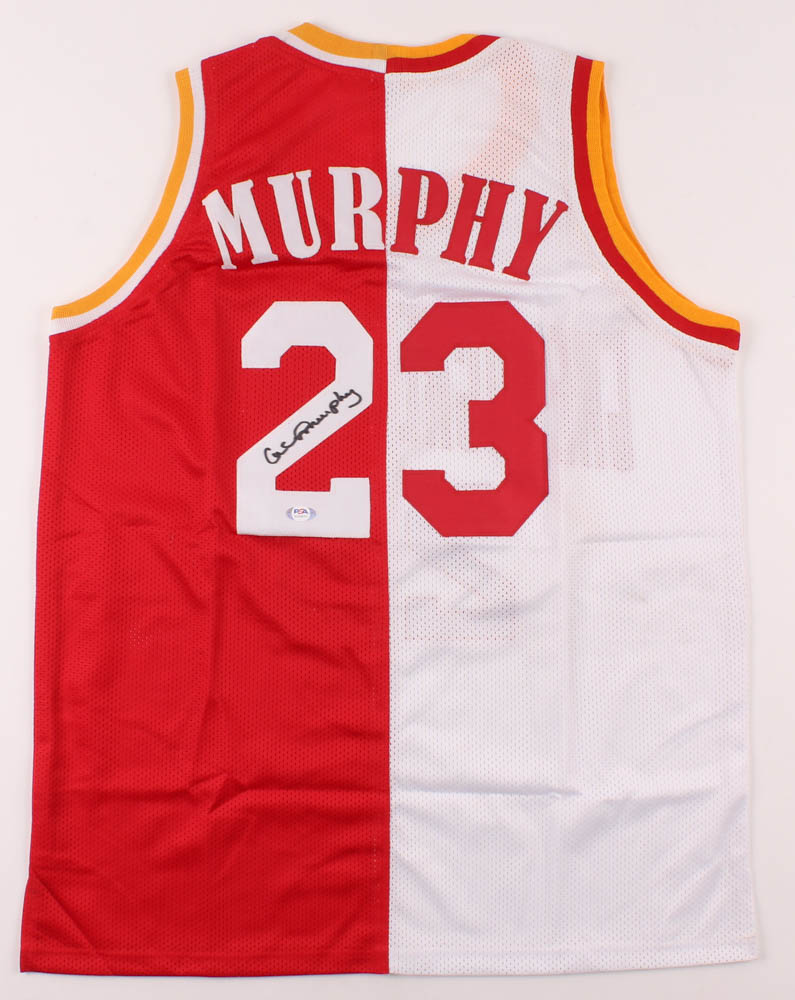Custom on-court style jersey. Everything is sewn on, size XL. Has been hand-signed in black felt-tip pen by Calvin Murphy (HOF).