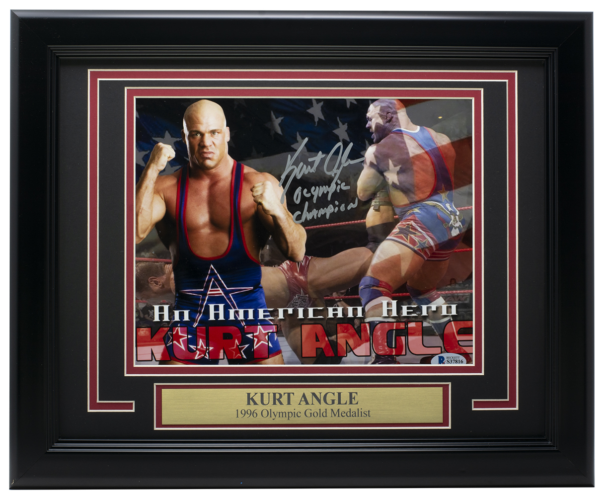 Kurt Angle Signed WWE 11x14 Custom Framed Photo Inscribed "Olympic Champion" (Beckett COA)
