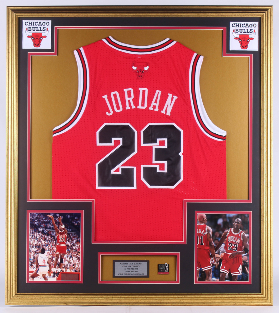 Michael Jordan 32x36 Custom Framed Jersey With Michael Jordan Scoring Champion Pin