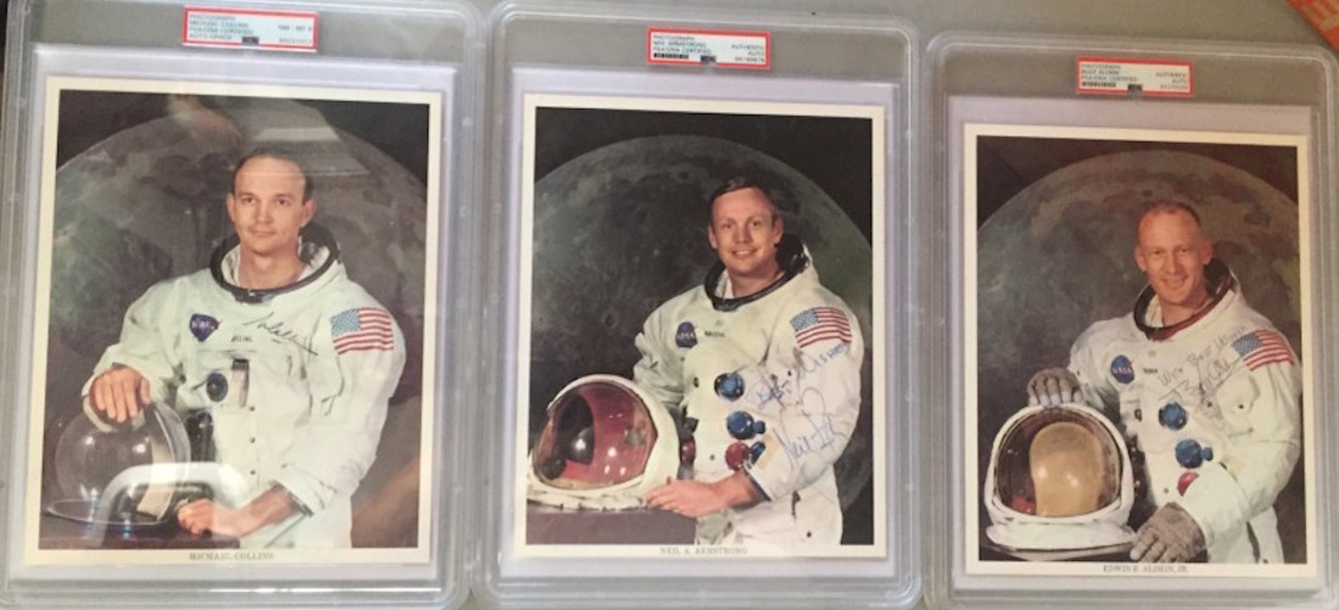 Lot of (3) 1969 Apollo 11 Crew 8x10 Photos Signed by Neil Armstrong, Buzz Aldrin & Michael Collins with Inscriptions (PSA LOA)