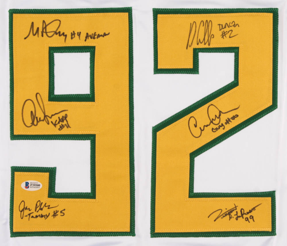 Hockey Jersey Cast-Signed by (6) with Matt Doherty, Jane Plank, Vincent LaRusso, Danny Tamberelli, Aaron Schwartz, Garette Ratliff Henson with Multiple Inscriptions (Beckett COA)
