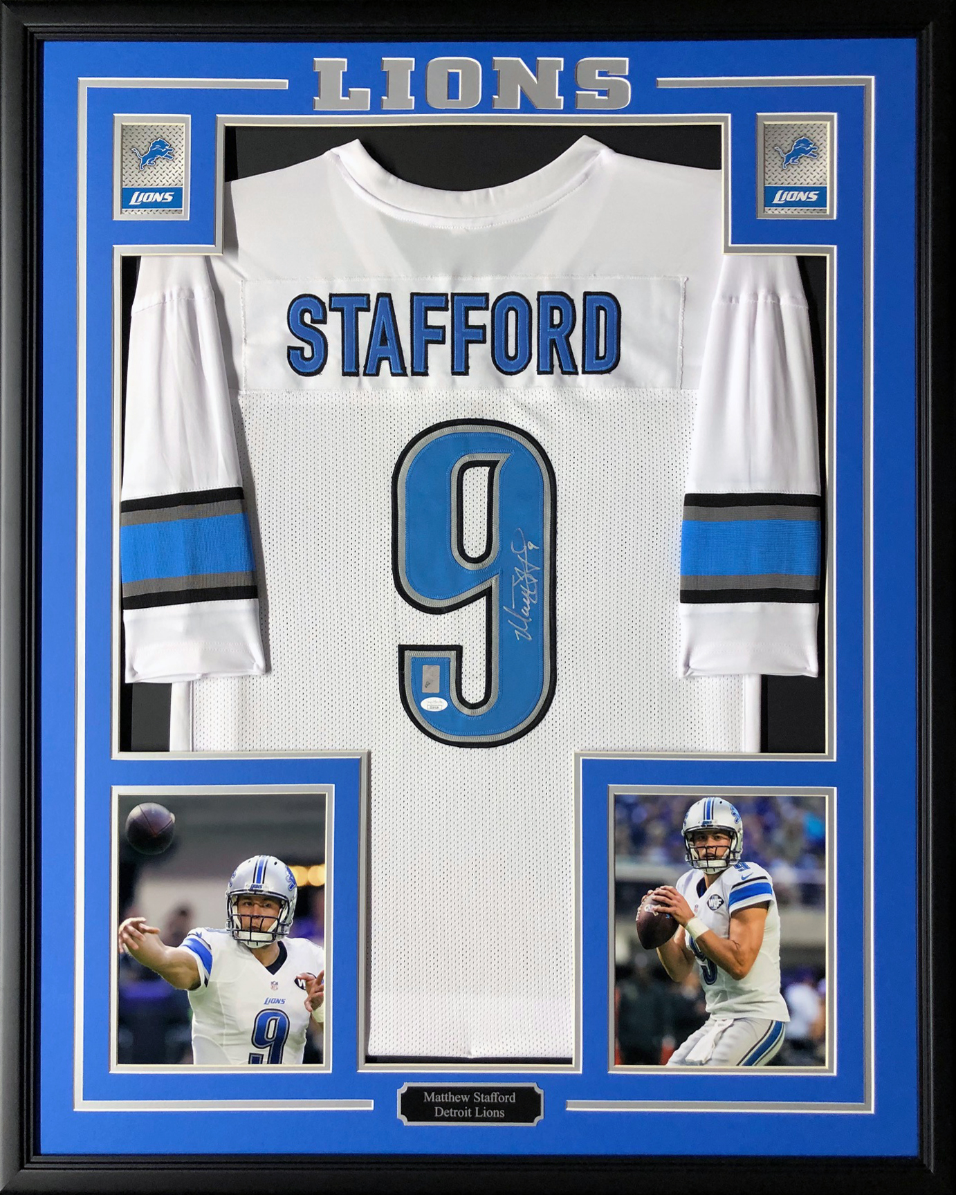 Matthew Stafford Signed 34.5x42.5 Custom Framed Jersey (Stafford Hologram & JSA COA)