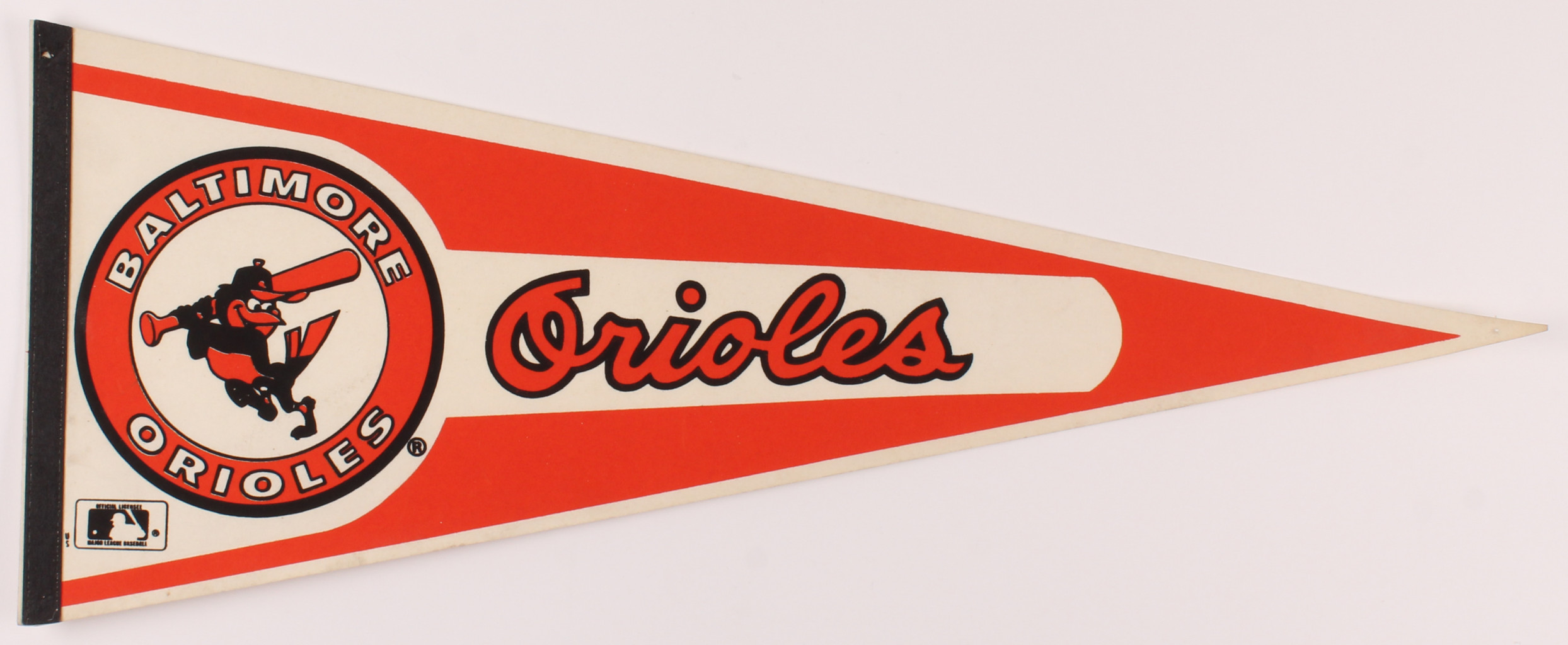 Baltimore Orioles pennant measures approximately 30" in length. Please see images for details regarding the condition of the pennant.