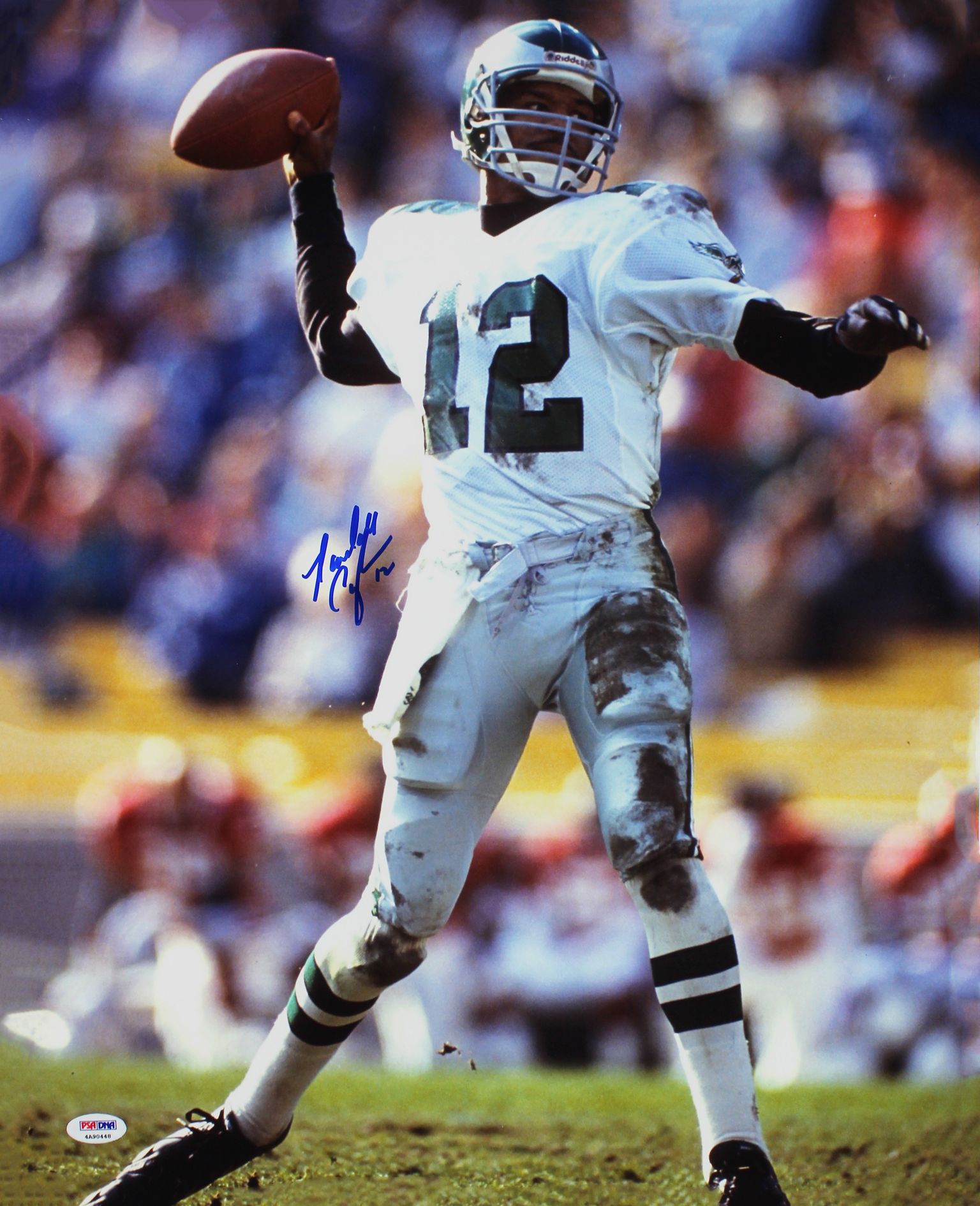Photo measures 16" x 20" in size and has been hand-signed in blue felt-tip pen by Randall Cunningham (Philadelphia Eagles).