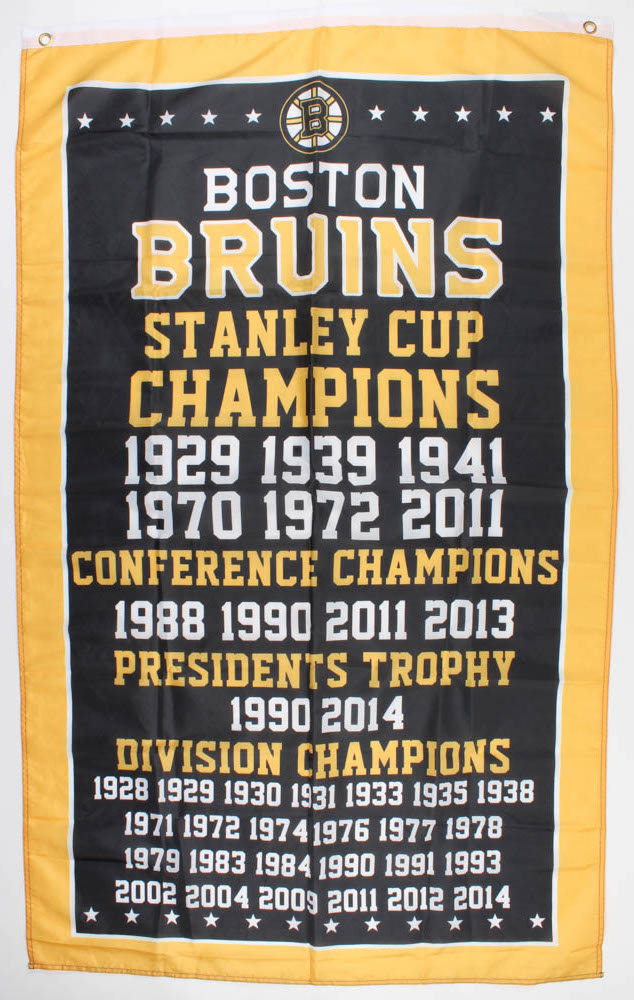 Boston Bruins Stanley Cup Champions Logo Flag measures 35" x 60" in size. Please see photo for more details.
