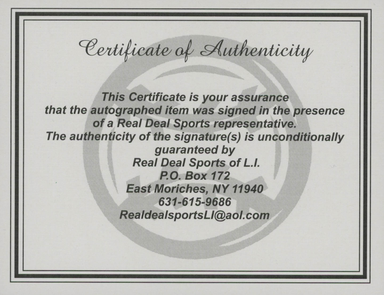 Authentication: Real Deal COA