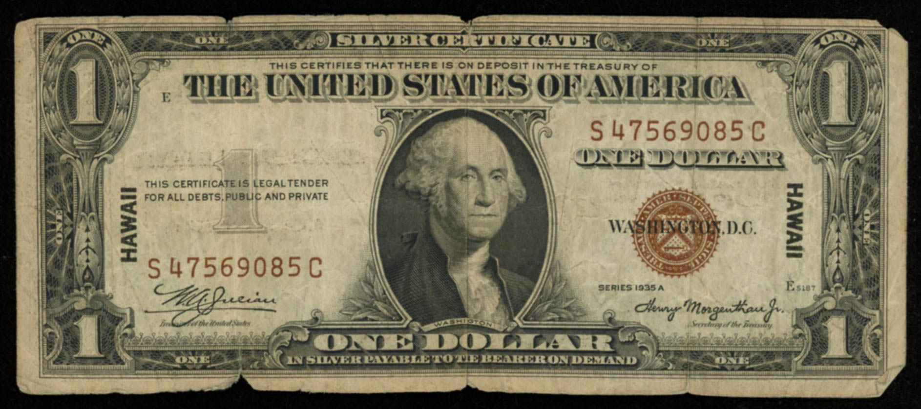 1935-A $1 One Dollar Hawaii Brown Seal Silver Certificate Bank Note Bill