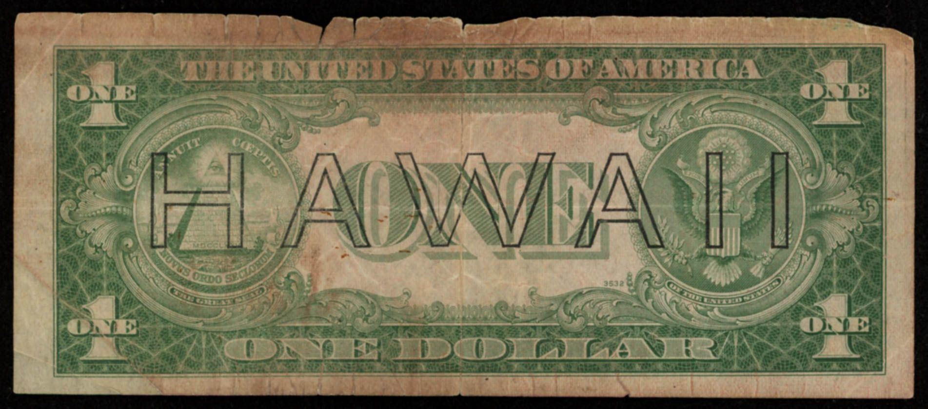 A Hawaii overprint note is one of a series of banknotes (one silver certificate and three Federal Reserve Notes) issued during World War II as an emergency issue after the attack on Pearl Harbor. The intent of the overprints was to easily distinguish US currency captured by Japanese forces in the event of an invasion of Hawaii and render the bills useless.