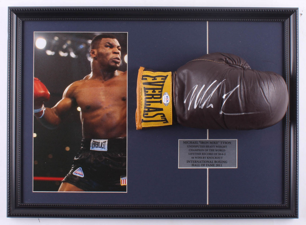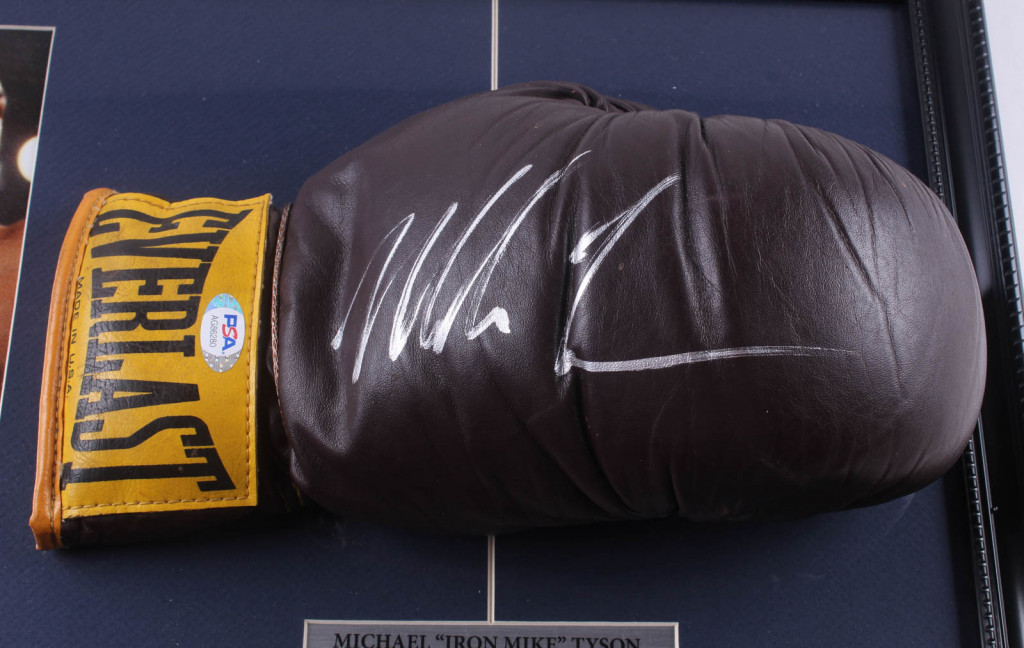 Mike Tyson Signed 16x22 Custom Framed Vintage Everlast Leather Boxing Glove Display (PSA COA)