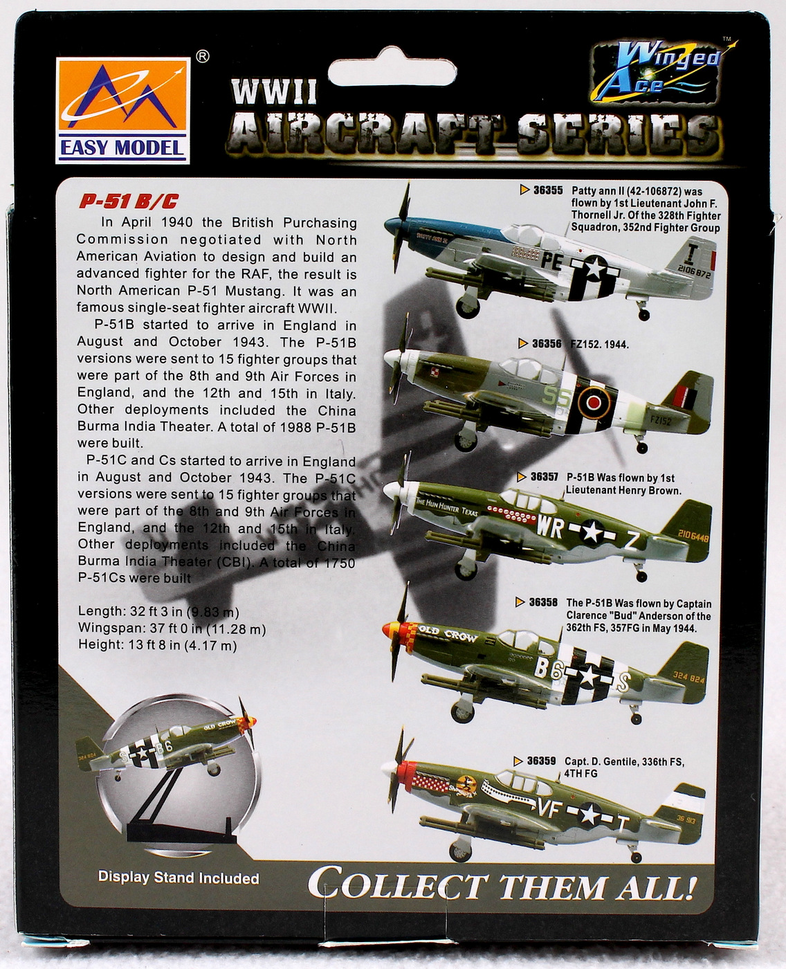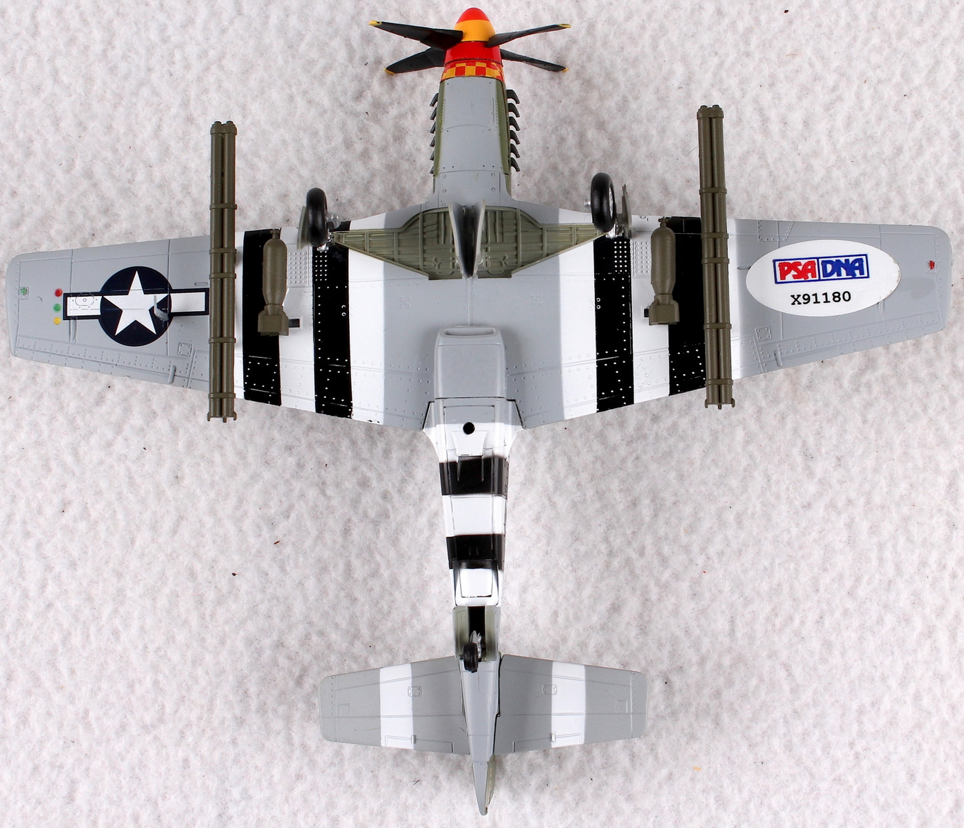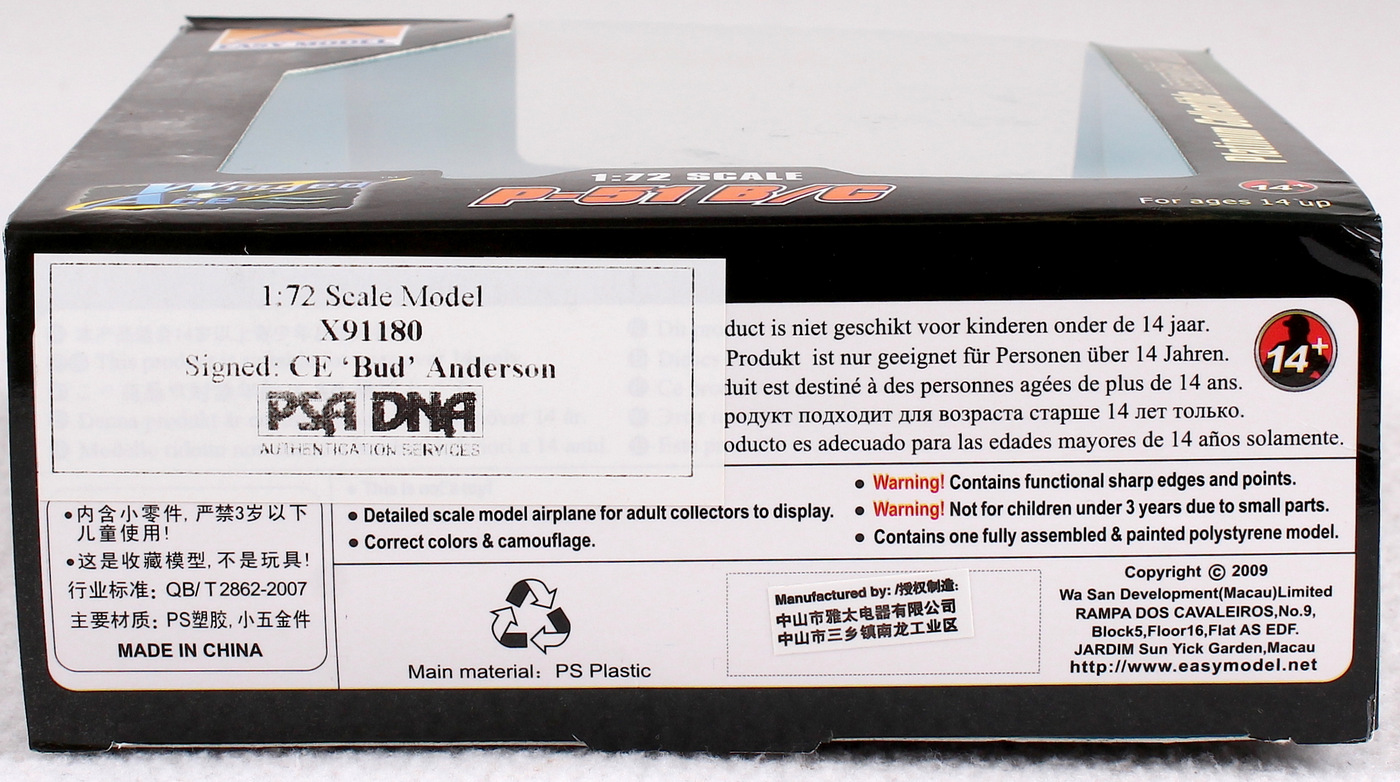 Model Plane measures 6" in length and is hand signed in silver paint pen by Bud Anderson (WWII Ace Pilot). Please see photos for more details regarding the condition of the model plane. The autograph includes an official PSA/DNA hologram and matching COA for authenticity purposes.