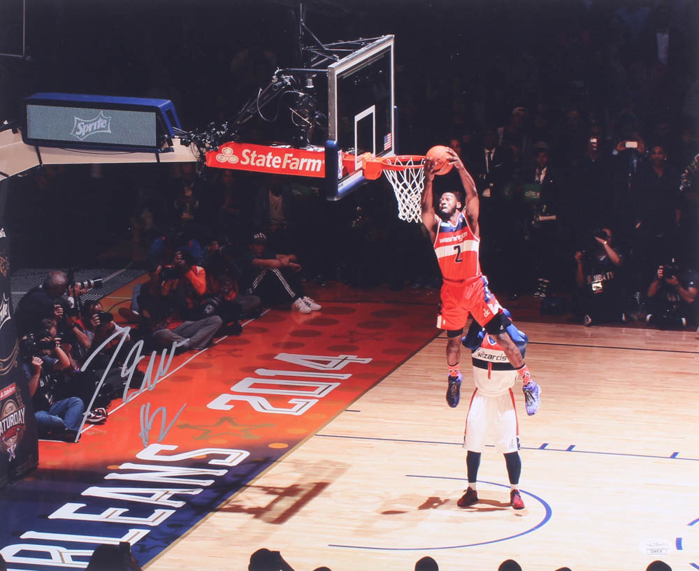 Photo measures 16" x 20" in size and has been hand-signed in silver paint pen by John Wall (Washington Wizards).