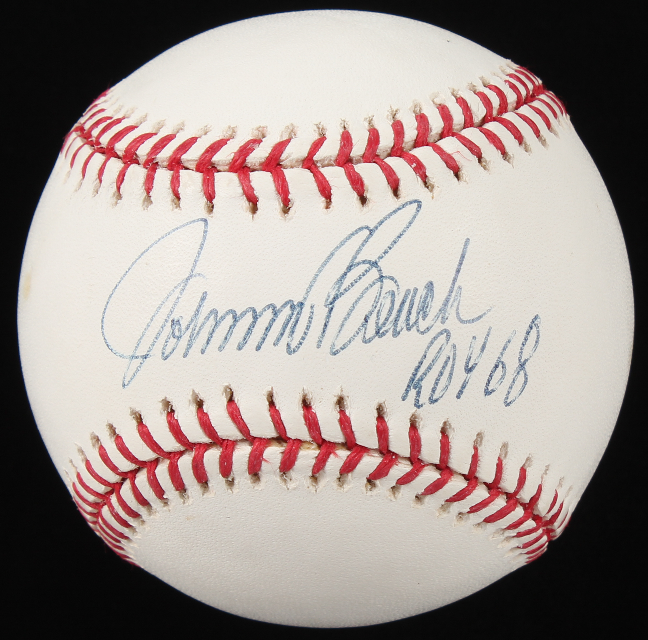 Johnny Bench Signed OML Baseball Inscribed "ROY 68" (MLB Hologram)