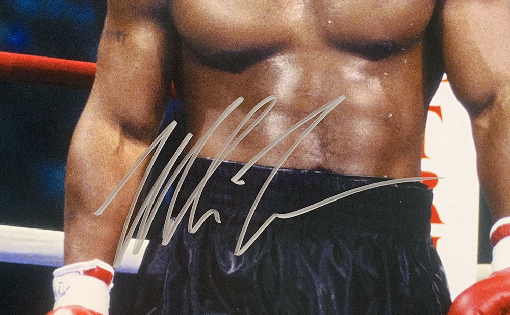 Photo measures 16" x 20" in size and has been hand-signed by Mike Tyson (HOF).