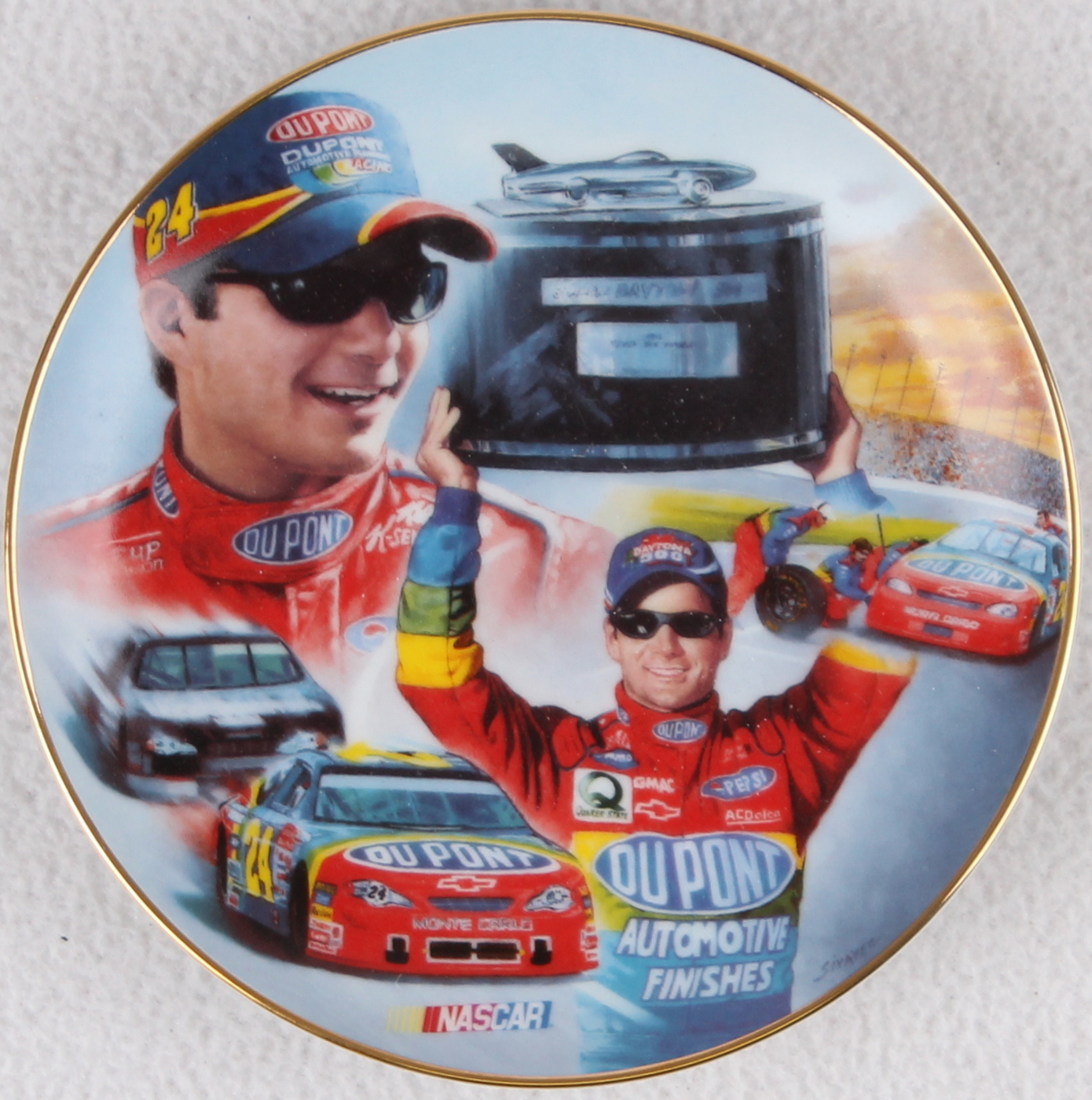 Plate measures 6.5" in diameter and features Jeff Gordon. Please note, plate is not hand signed. Produced in 2001 by JG Motorsports, Inc. Plate is a limited edition to a maximum of 95 firing days. Please see photos for more details.