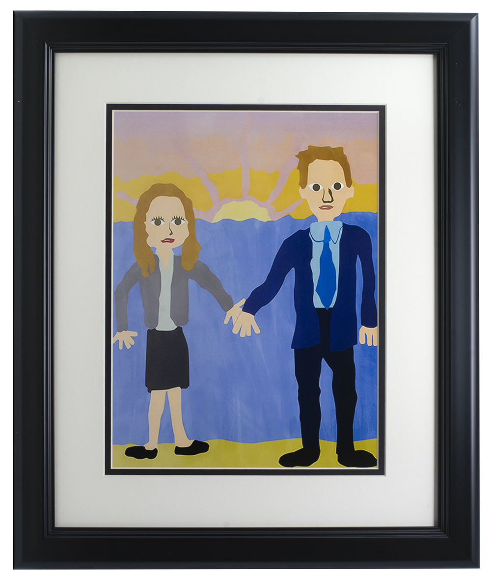 Custom frame measures 11" x 14" in size and features a print of the paining Jim and Pam Halpert receive at their wedding from "The Office". Please note, print is unsigned.