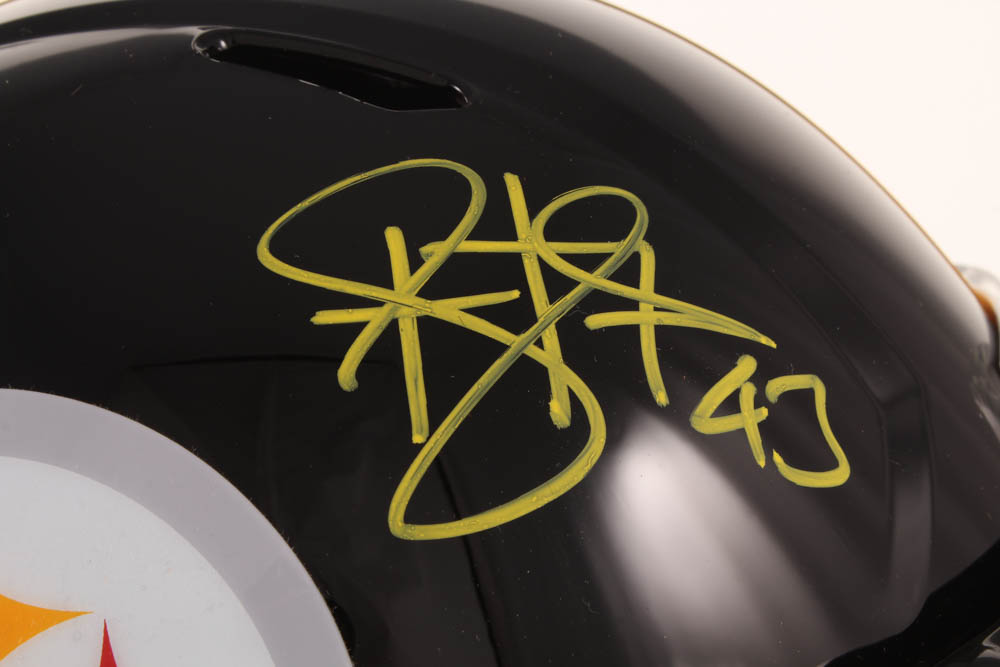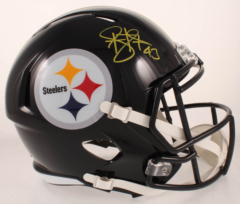 Riddell Pittsburgh Steelers full-size replica speed helmet. Hand-signed in yellow paint pen by Troy Polamalu (HOF).