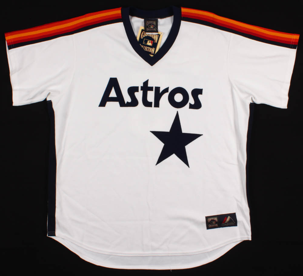 Majestic Cooperstown Collection on-field style jersey. Everything sewn on, size XL. Hand-signed in silver paint pen by Jeff Bagwell (Houston Astros, HOF). Please see images for details regarding the condition of the jersey.