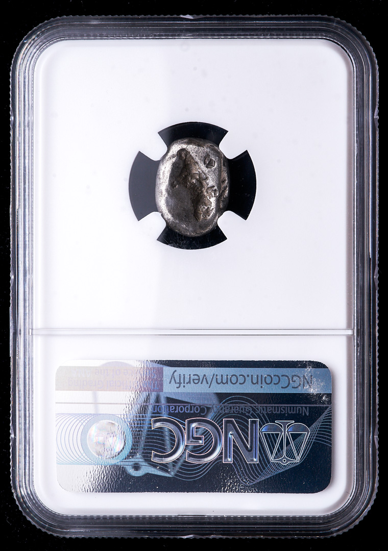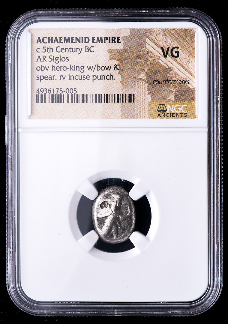 Circa 5th Century B.C. Achaemenid Empire - AR Siglos Silver Coin obv Hero King with Bow & Spear rv Incuse Punch (NGC Very Good)