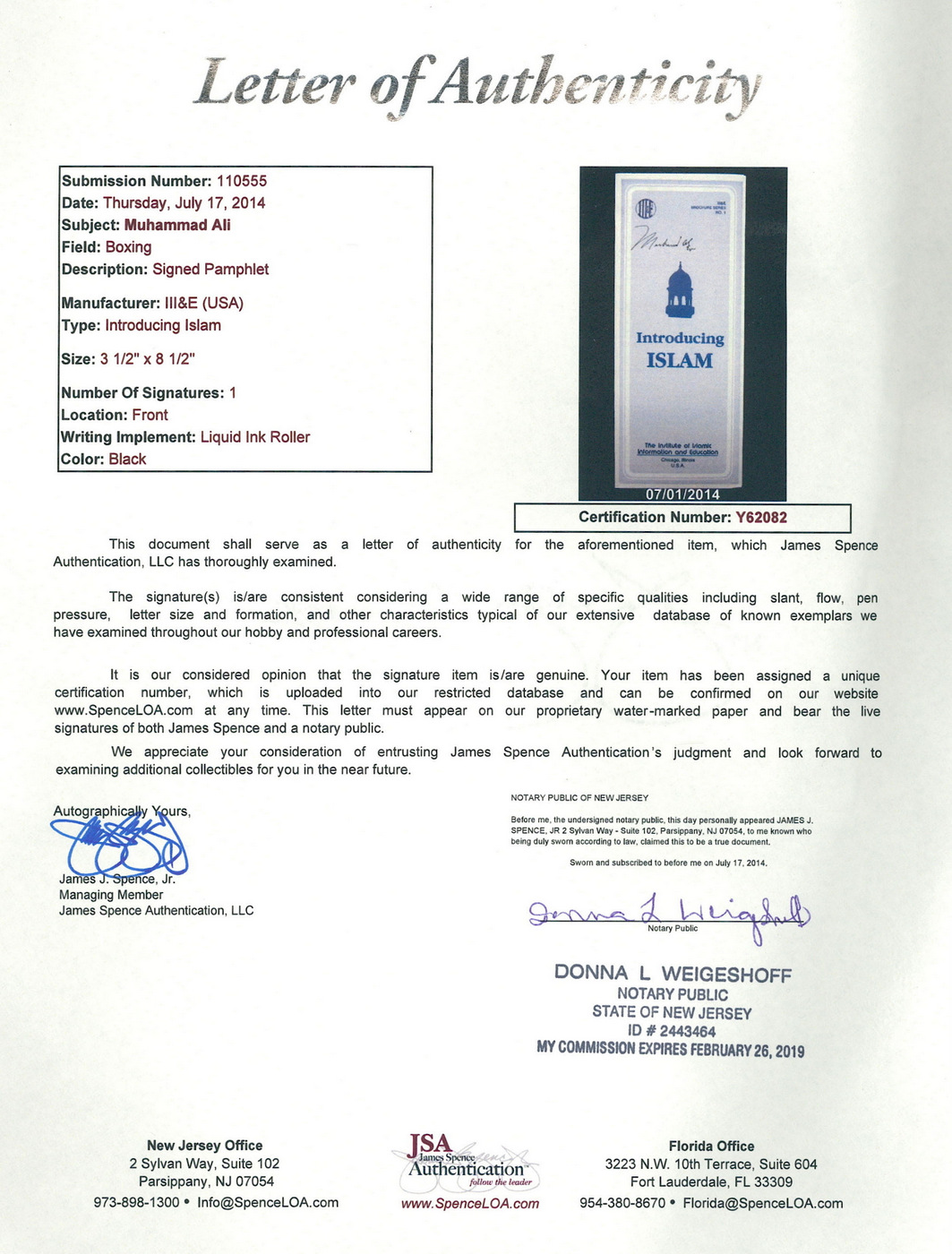 Muhammad Ali Signed "Introducing Islam" Islamic Brochure (JSA LOA)