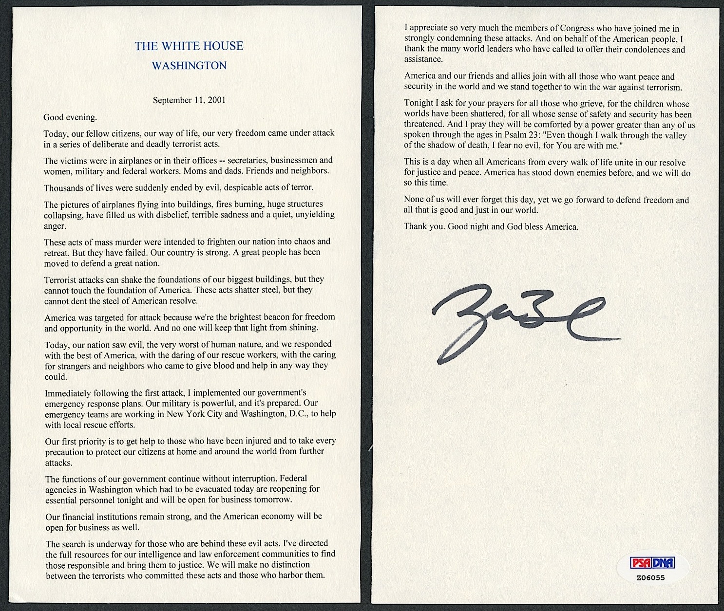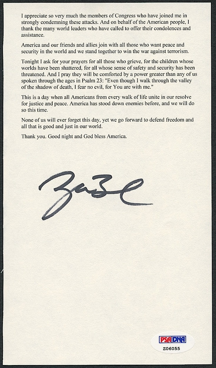 George W. Bush Signed 911 Ground Zero Speech (PSA LOA)