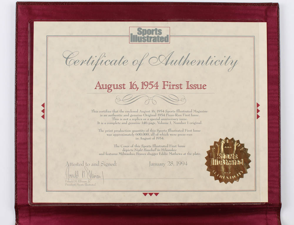 Original First Issue Sports Illustrated Magazine from August 16, 1954 with Commemorative Portfolio (See Description)